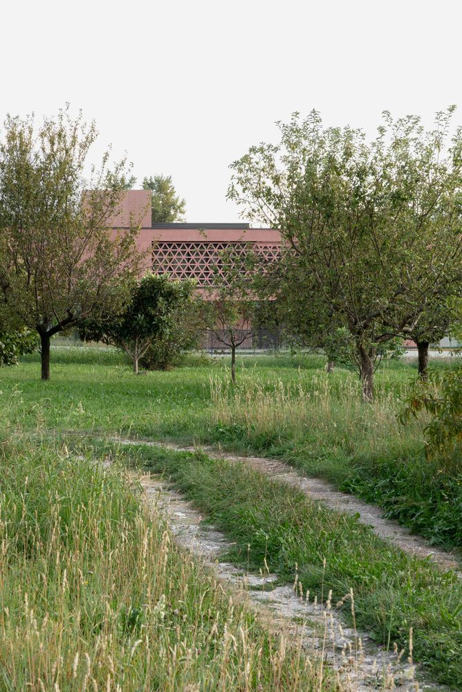 The architectural strategy blurs the boundaries between interior and exterior, allowing natural elements to penetrate the school environment. A tree-lined pedestrian axis crosses through the site, connecting the surrounding landscape with the school's internal courtyards. These open-air spaces provide natural illumination and enhance the permeability of the learning environment, ensuring that classrooms and communal areas remain visually and physically interconnected.