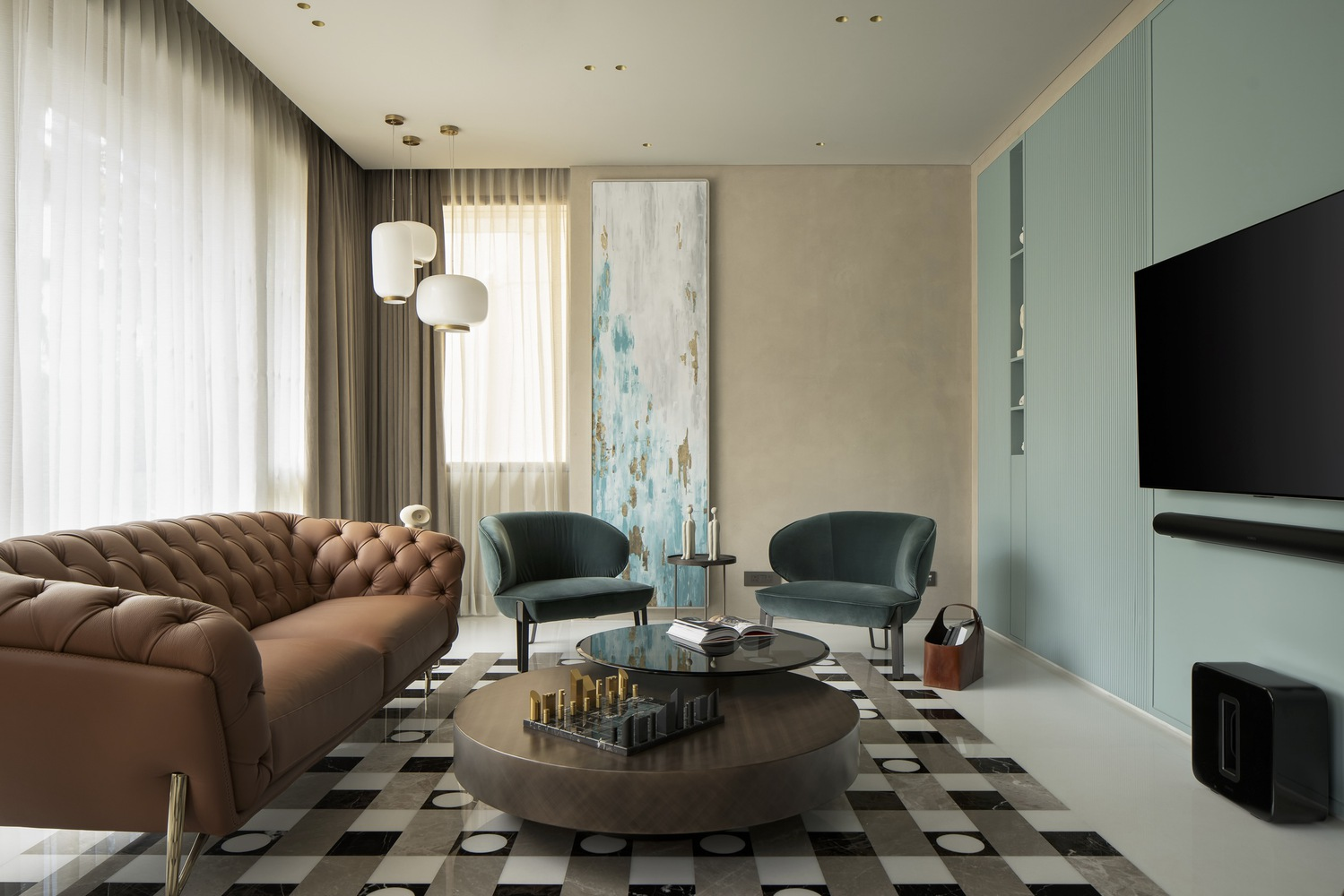 Sustainability is at the core of modern villa architecture, and Wedge Villa incorporates a number of eco-friendly features. The careful use of materials such as Omani marble, white marble, and stone ensures that the villa is both durable and aesthetically pleasing. The design also makes use of energy-efficient systems, with manufacturers like Daikin and Saint-Gobain contributing products that enhance the home’s energy performance.