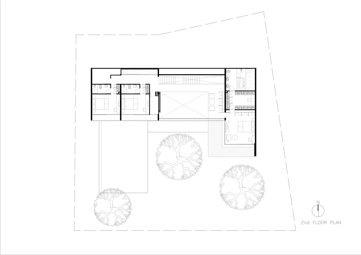 N26 Residence by WARchitect is an exemplary modern L-shaped house design located in the vibrant city of Bangkok, Thailand. Designed by lead architect Thawin Harnboonseth and completed in 2024, this 752-square-meter residence is a harmonious blend of sleek structural elements, natural materials, and seamless indoor-outdoor connections. Situated on a 282-square-meter plot, the house is uniquely accessible from two roads, reflecting the close-knit relationship between the homeowner and a family member living across the street.