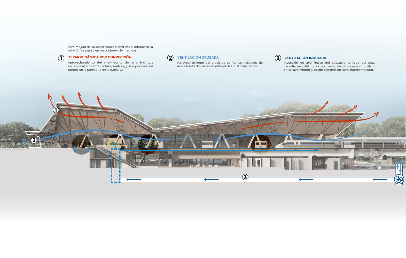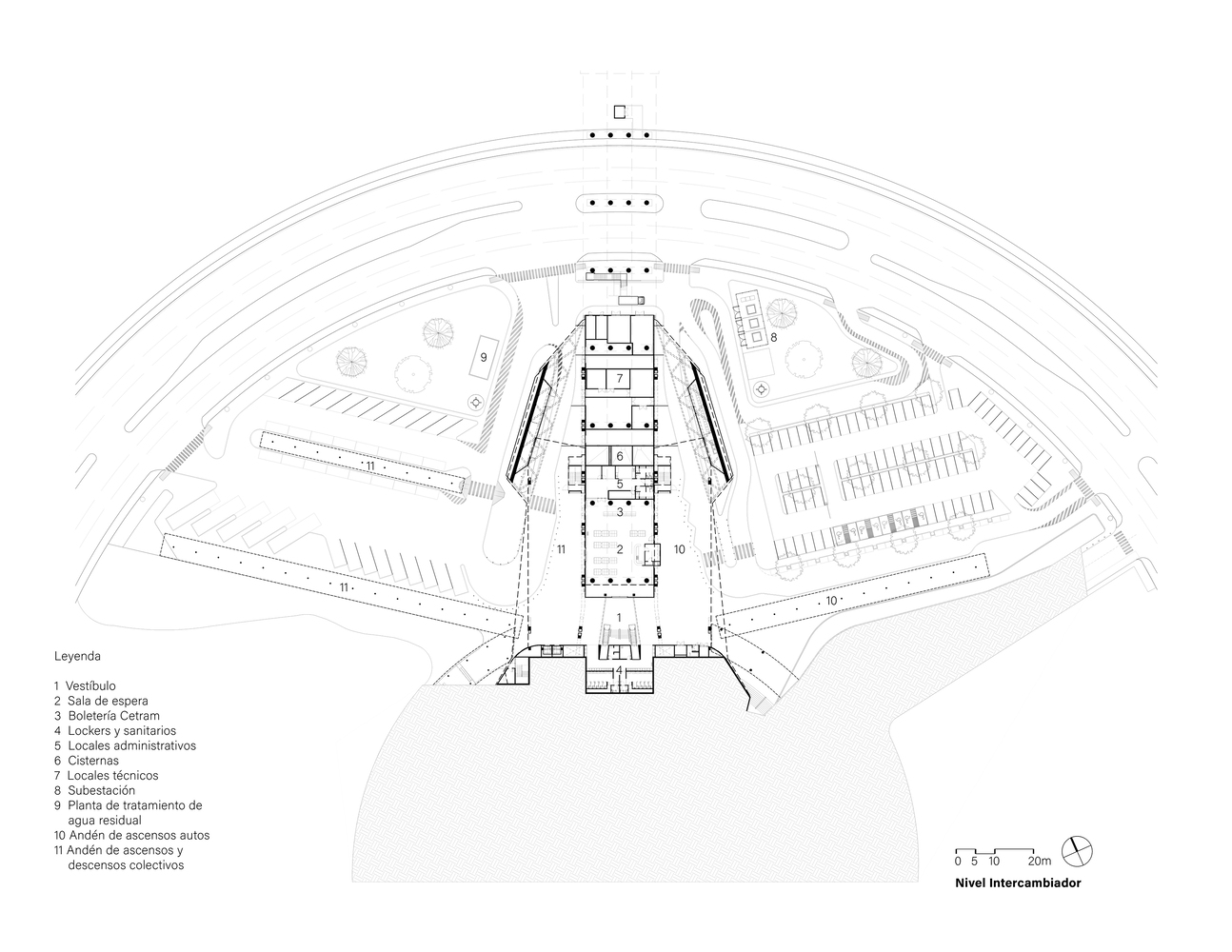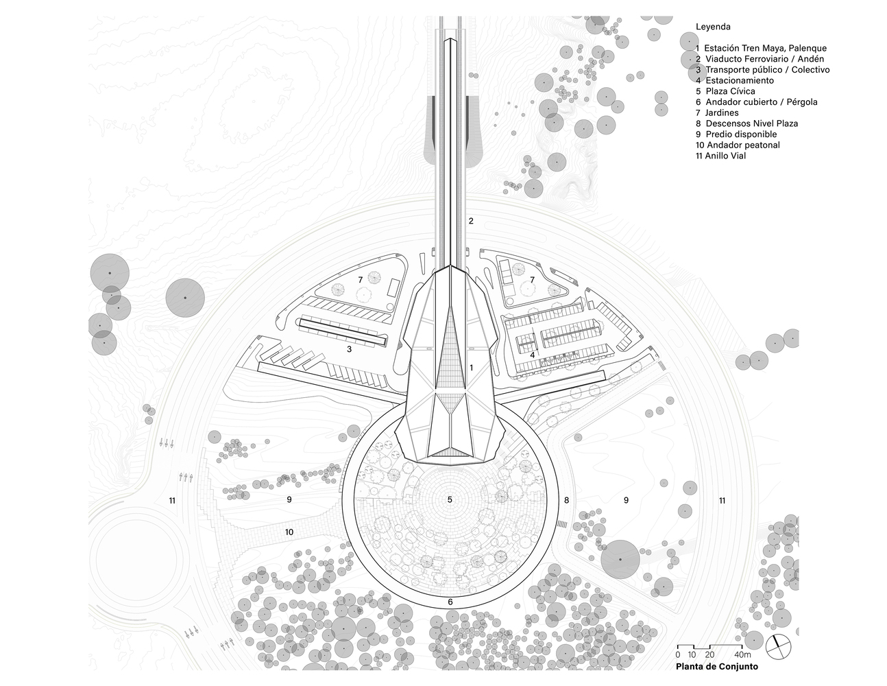 The placement of the station on the former site of Palenque’s first airport carries historical significance as well. Built on a levee, this elevated position allows the station to integrate seamlessly into the natural and urban landscapes, while providing functional resilience against the challenges of the local terrain.