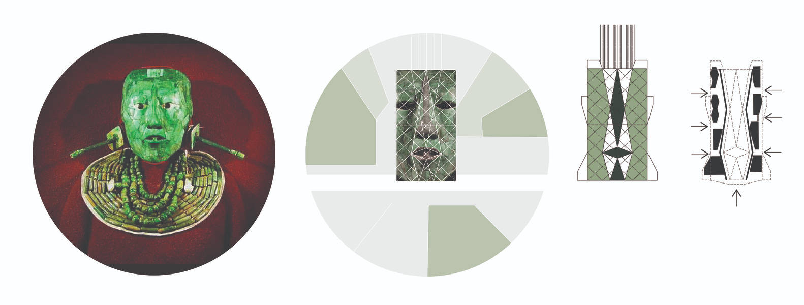 The station incorporates elements inspired by Maya art and artifacts. A mosaic wall abstractly represents the green mask of King Pakal, a ruler from the Maya classical period. This iconic artifact’s geometric design subtly influences the building's shape and aesthetic, embedding historical symbolism within contemporary architecture.