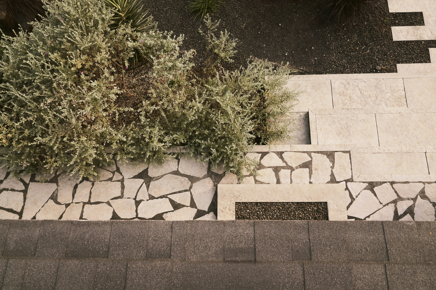 The landscape design complements the architectural vision, embracing the rugged beauty of the natural terrain. Inspired by desert landscaping, the selection of flora ensures sustainability in the region’s hot and dry summers. The landscape seamlessly merges with the wild grassy surroundings while incorporating playful elements requested by the homeowners. The result is an organic, untamed aesthetic that enhances the home’s integration with its environment.