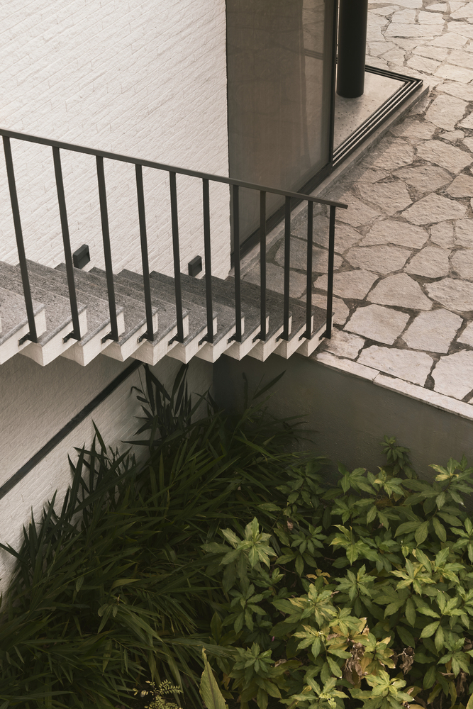Pavilion House is structured into two primary sections: a dynamic living and entertainment area and a private retreat for the family’s bedrooms. This distinction is emphasized through variations in construction techniques and roof forms.