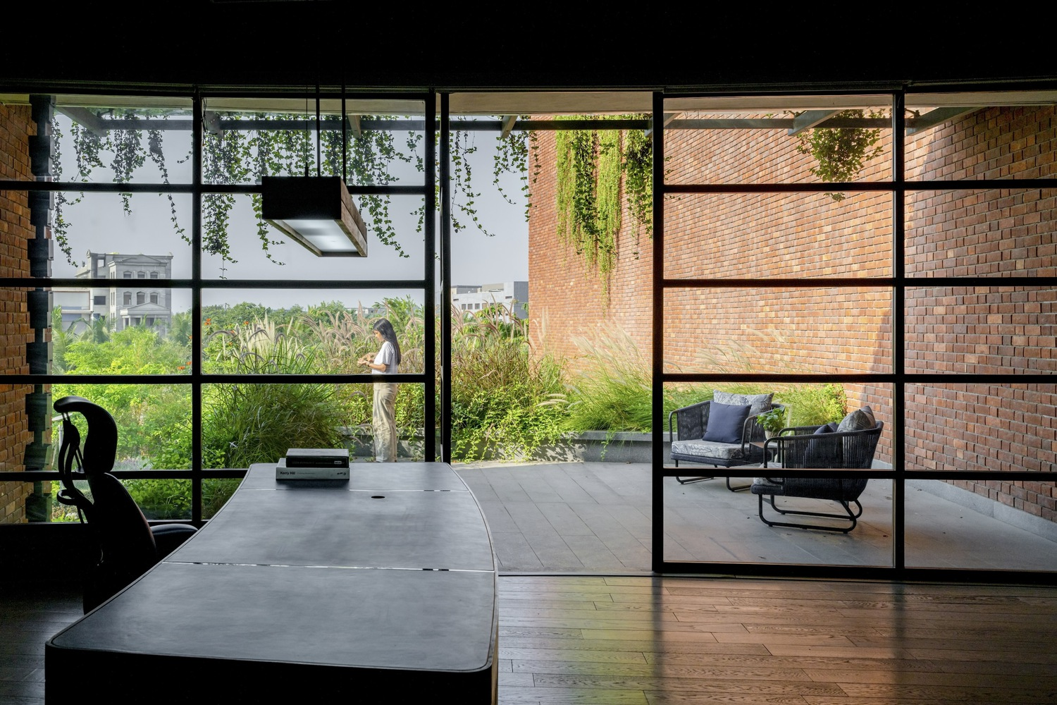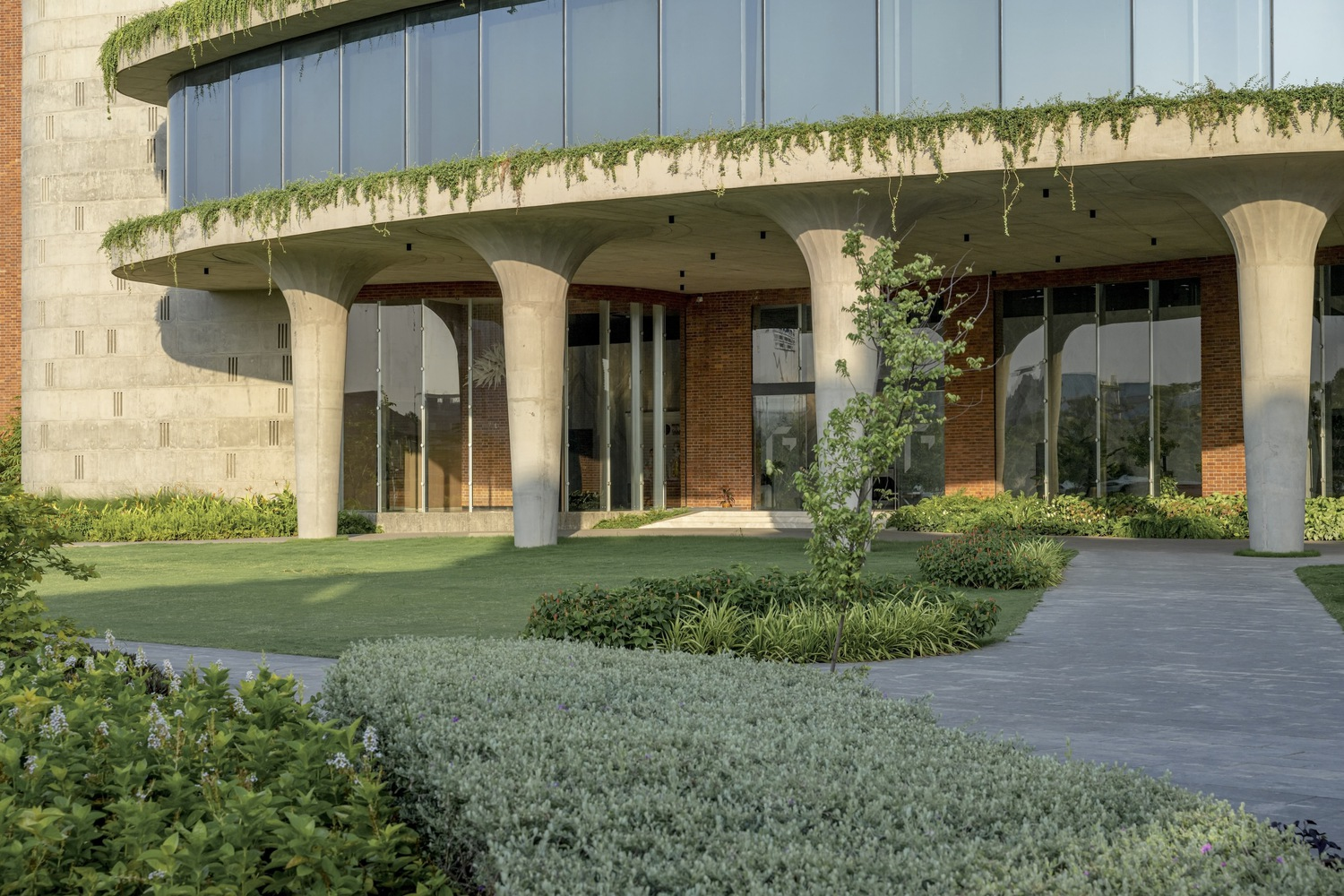 At the heart of this project is the commitment to sustainable architecture. The factory’s captivating facade, featuring exposed RCC slabs and brick cladding, is seamlessly blended with lush greenery, setting a new standard for factory designs. This approach not only challenges traditional industrial aesthetics but also promotes a healthier, more pleasant working environment.