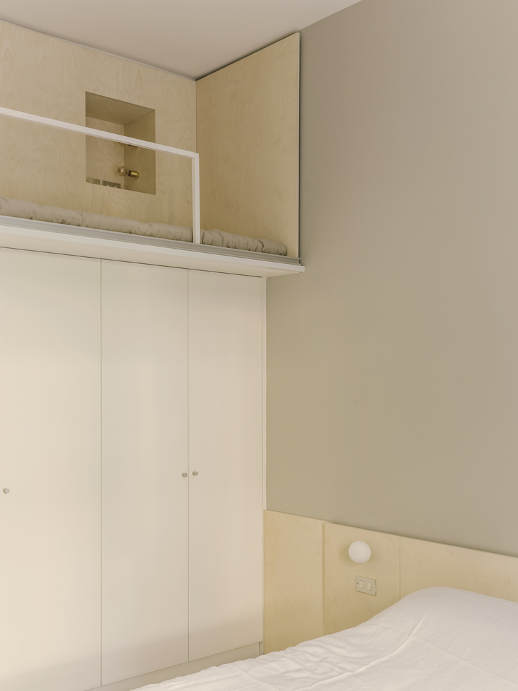 Precision in design is evident in every custom-built furnishing element. Each piece has been tailored specifically to the apartment’s proportions, contributing not only to functional efficiency but also to the spatial identity of the home. From storage solutions to integrated beds and shelving, the custom design serves both as furniture and as an architectural extension of the space, enhancing the perception of openness and order.