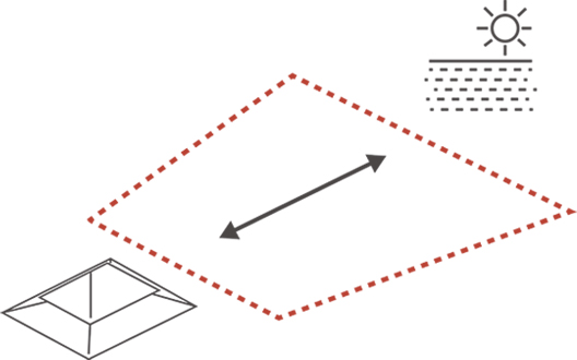 Porous facade made from combination of opaque and translucent tile roof specifically on east and west side of building accentuates diurnal sun movement on interior, creating time sensitive space.