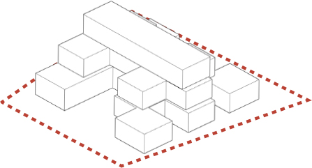 Based on proxemic study, social event happens at 4-12 feet. Fragmented mass is employed as design vocabulary to achive articulated space in response to that study.