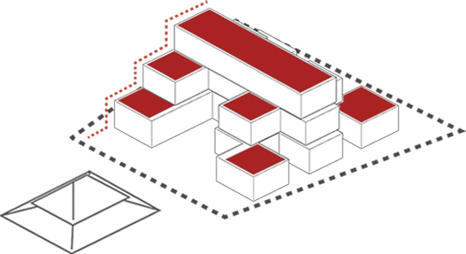 Section BStepped pyramid silhouette creates green terrace on each floor level, which allows the users to stay connected with the nature and site surroundings. The skylight brings in more natural light to interior and located strategically to accentuate fragmentation of the space.