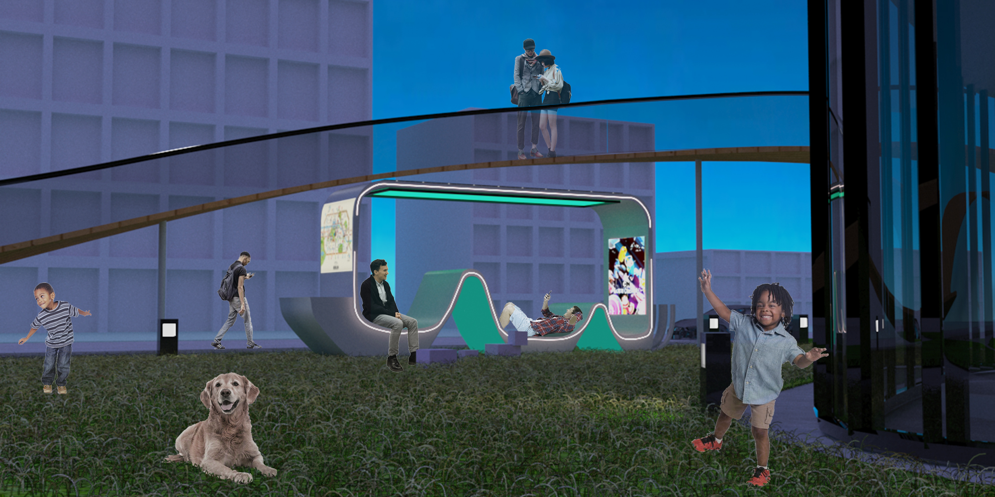 My idea of designing the bench was first to return to the previous and simple design, and then make the spacing between the chairs and some of them so that the distance is sufficient to implement the needs and at the same time is safe in terms of spacing, the last step is to make another activity inside the bench and this overlap was games for children and this helps On the safety factor between parents and children in public parks .