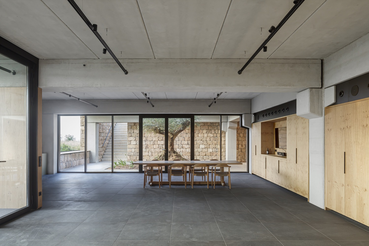 A cornerstone of the project's sustainability ethos is its use of local materials. The construction repurposed stone excavated from the site, reducing transportation emissions and ensuring that the building reflects its environment's physical and aesthetic characteristics. This choice not only supports local ecosystems but also enhances the oil mill's thermal performance, leveraging the natural insulation properties of the earth.