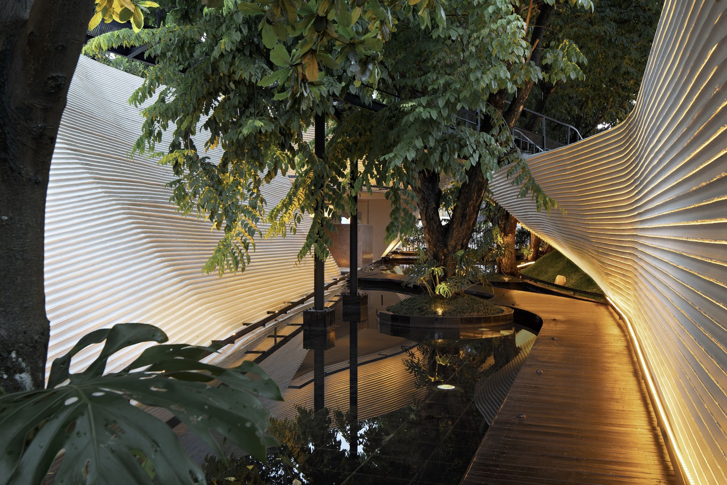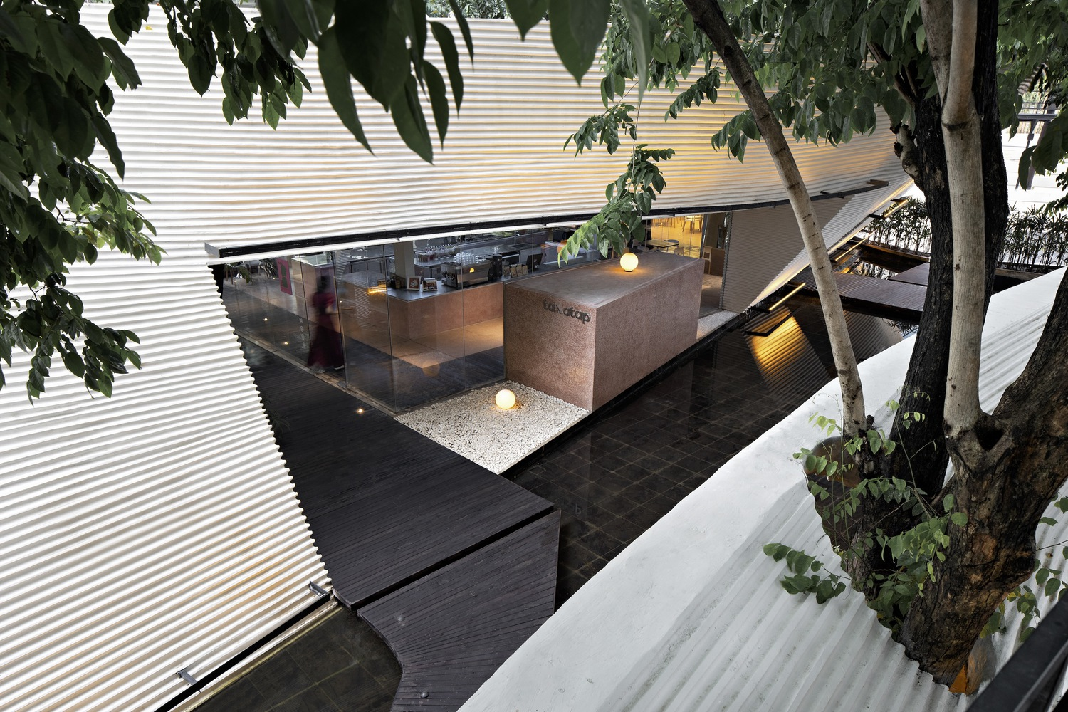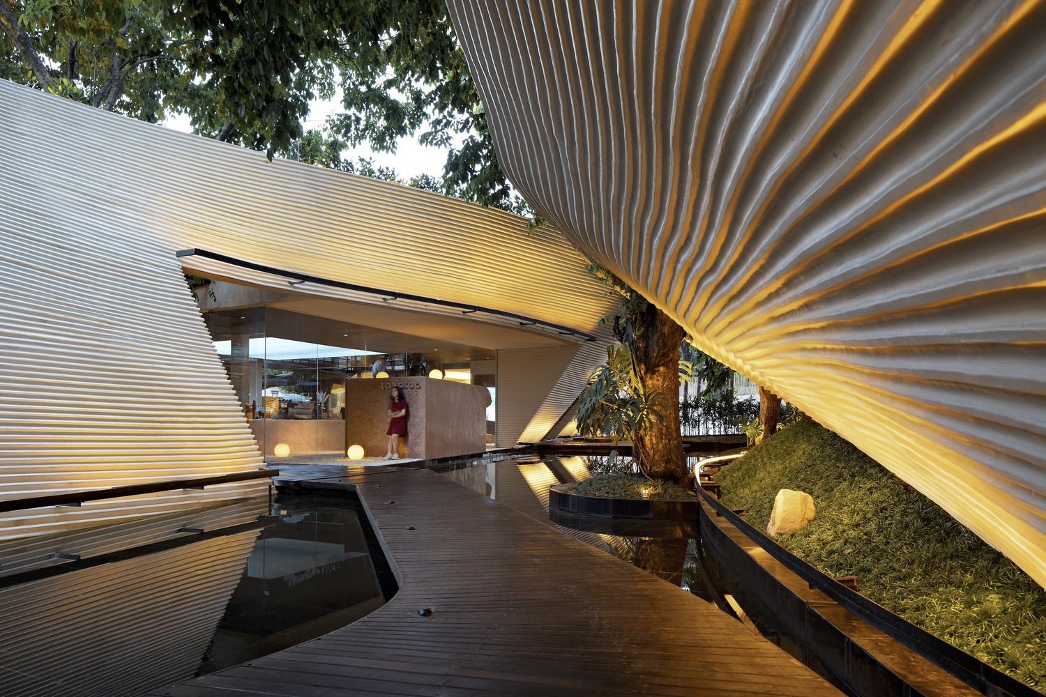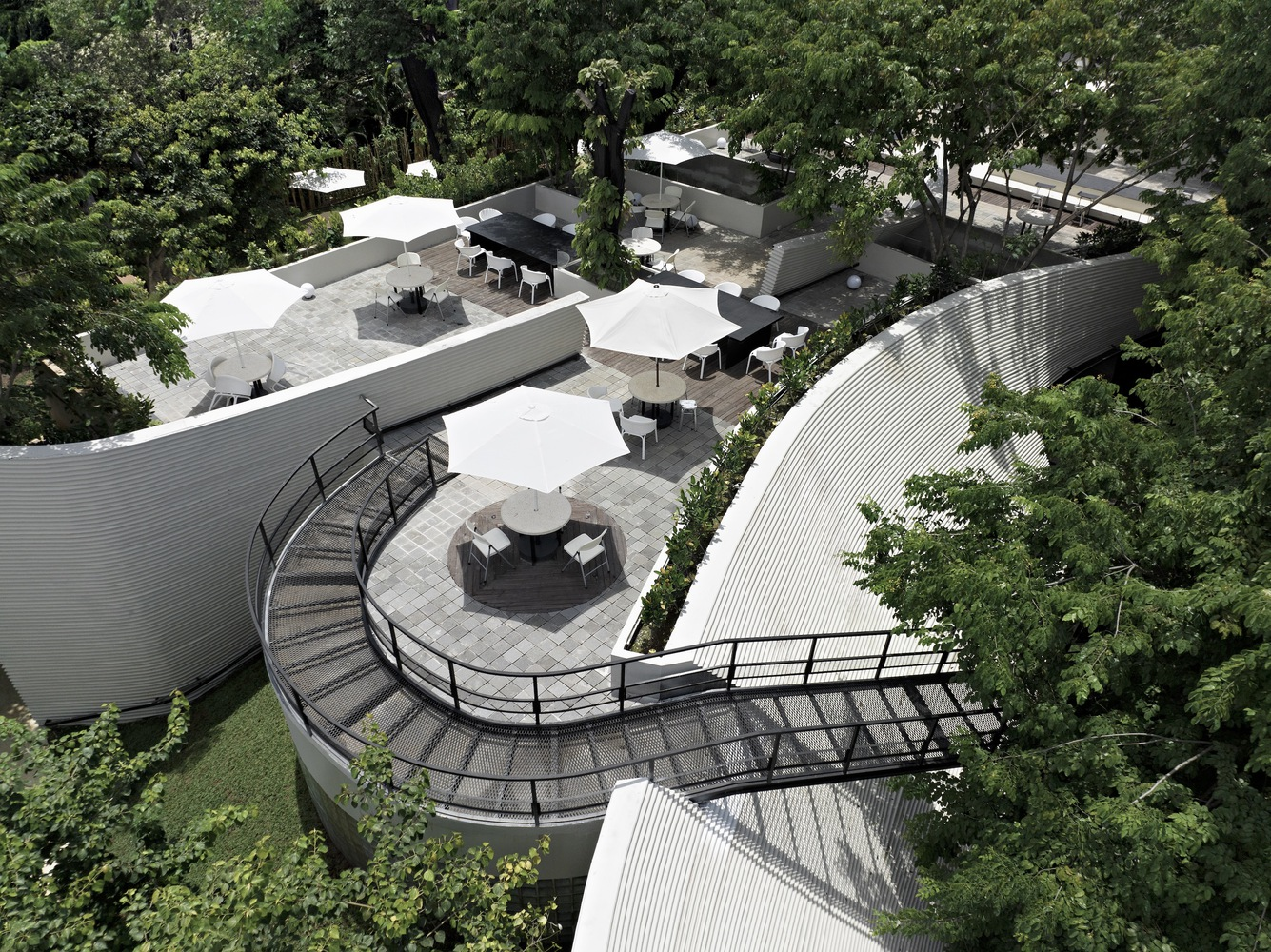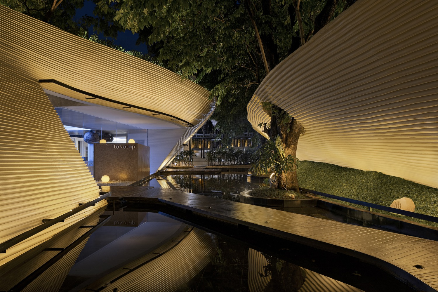 The design of Tanatap starts with a fundamental question: Can a commercial space transcend the basic architectural element of a wall? RAD+ar's answer was to create three distinct walls varying in height, weaving through the lush greenery of the site. This unique approach creates a series of interconnected indoor and outdoor spaces, redefining the boundaries between architecture and nature.