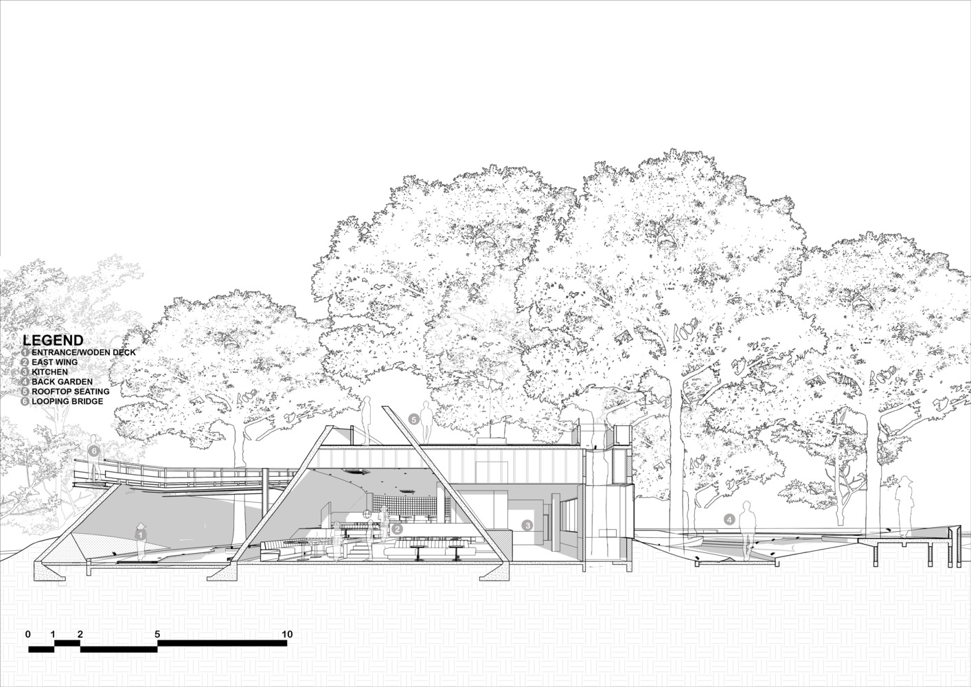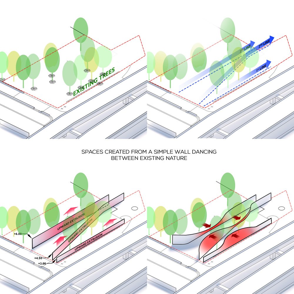 The design strategy of Tanatap Wall Garden seamlessly blends areas of reflection, creativity, and communal gathering. Spaces such as the reflection entrance garden, the creative amphitheater, and the backyard garden are all intertwined with the site's existing trees, creating an organic flow that encourages exploration and interaction.
