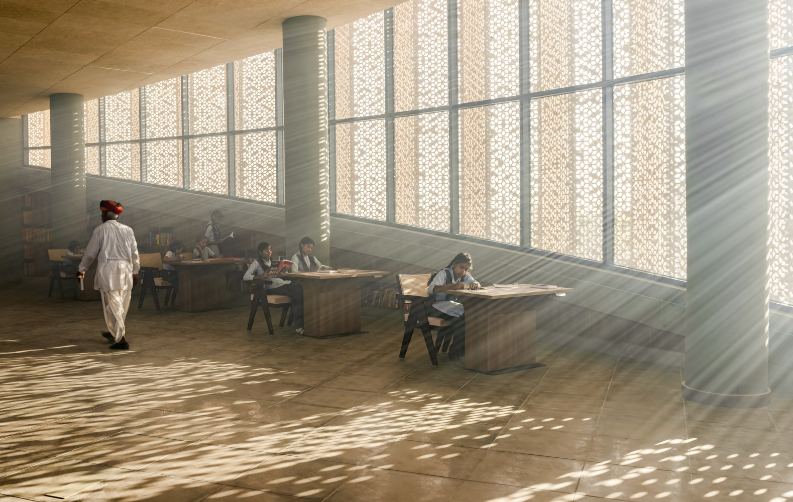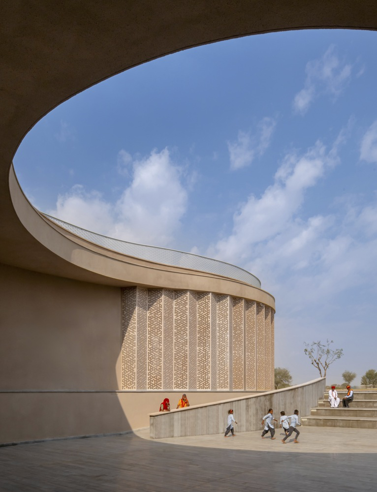 The Nokha Village Community Centre was conceived as a memorial by the clients to honor their father, Padmaramji Kularia. Situated in the desert region of Nokha, which comprises 144 small villages, this project addresses the critical need for communal spaces that cater to all age groups. The architects were tasked with creating a space that not only serves the community's immediate needs but also stands as a testament to sustainable and climate-responsive design.