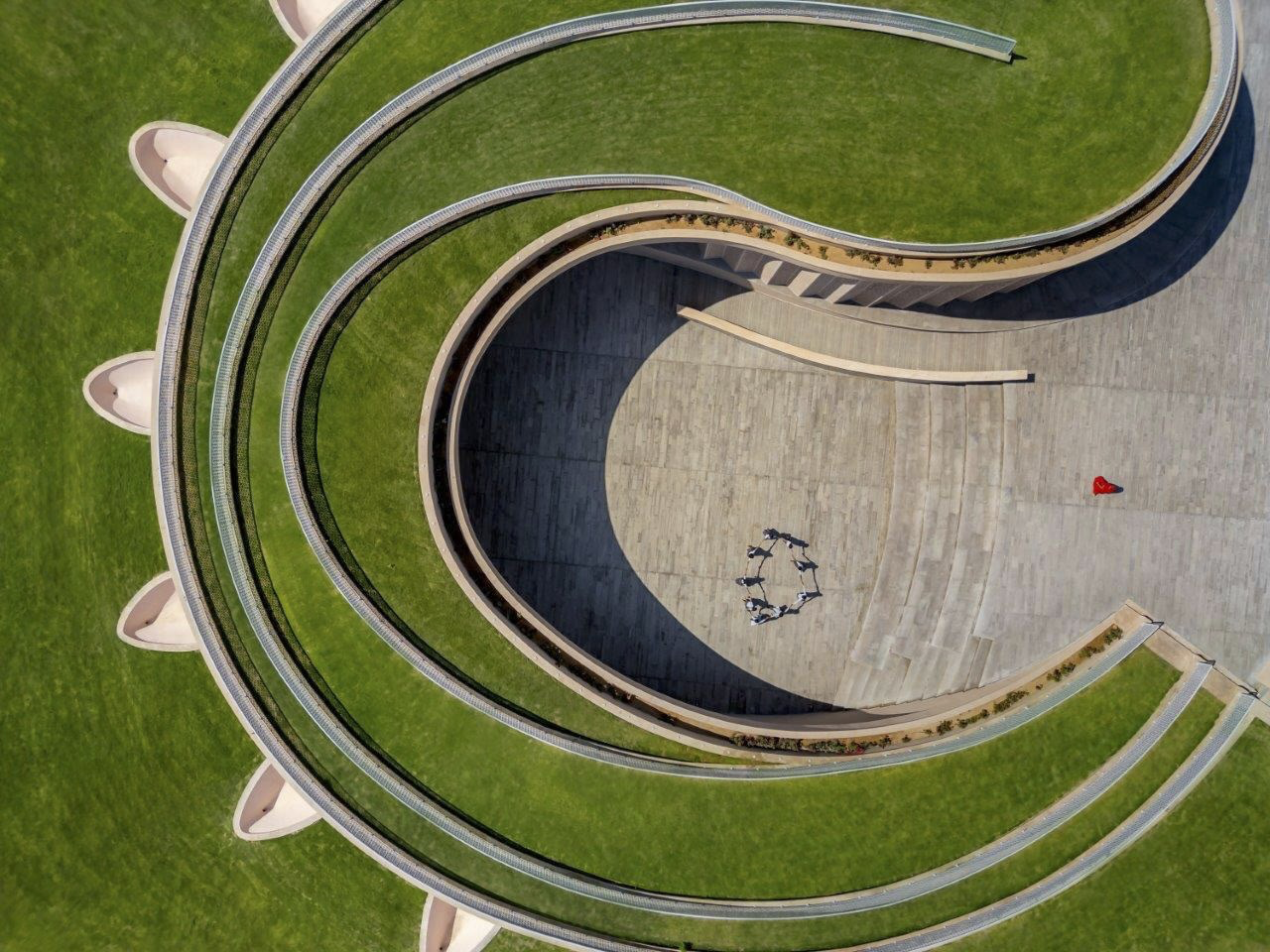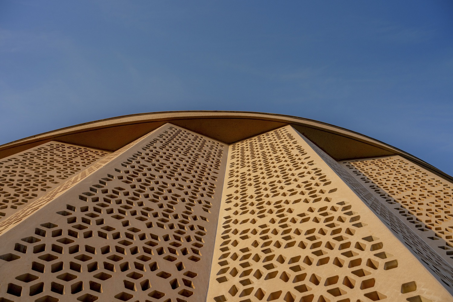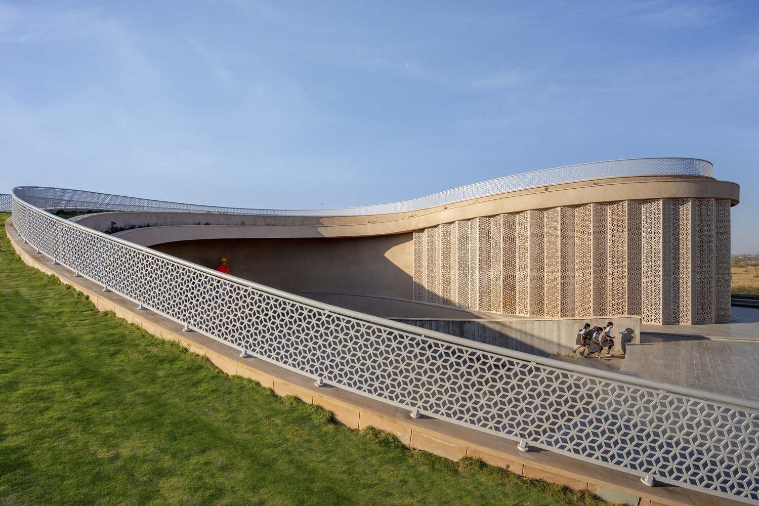 At the core of the Centre's design is a 9,000 square foot spiral structure that majestically rises to form an inclined garden. This unique design facilitates recreational activities and gatherings, offering panoramic views of the desert landscape. The spiral's two varying slopes make the rooftop garden an accessible and vibrant space for the community.