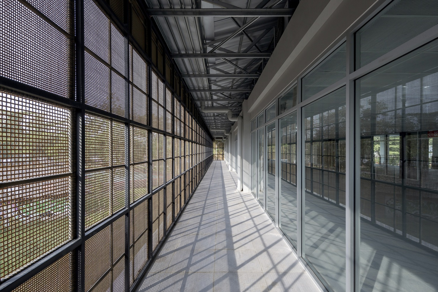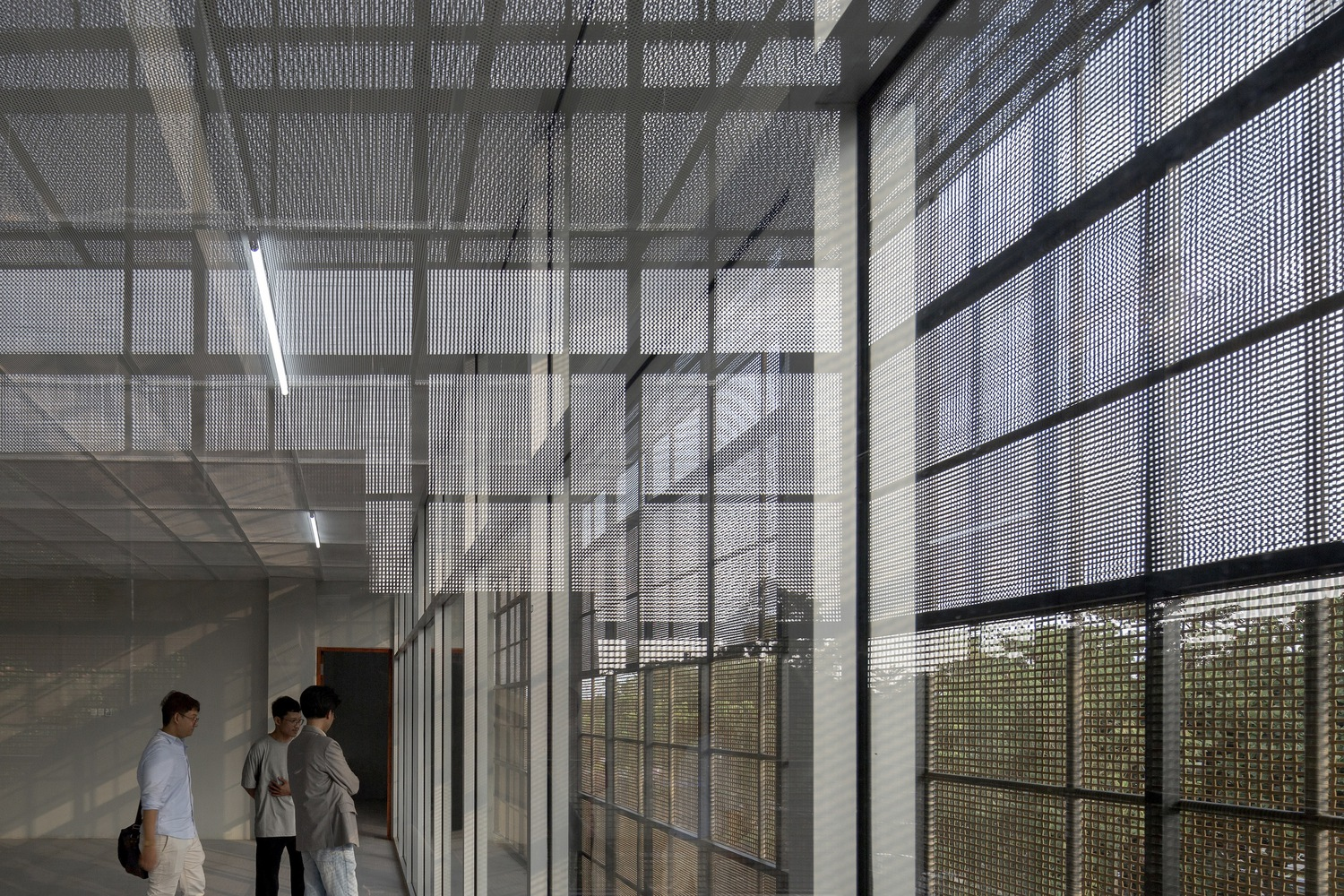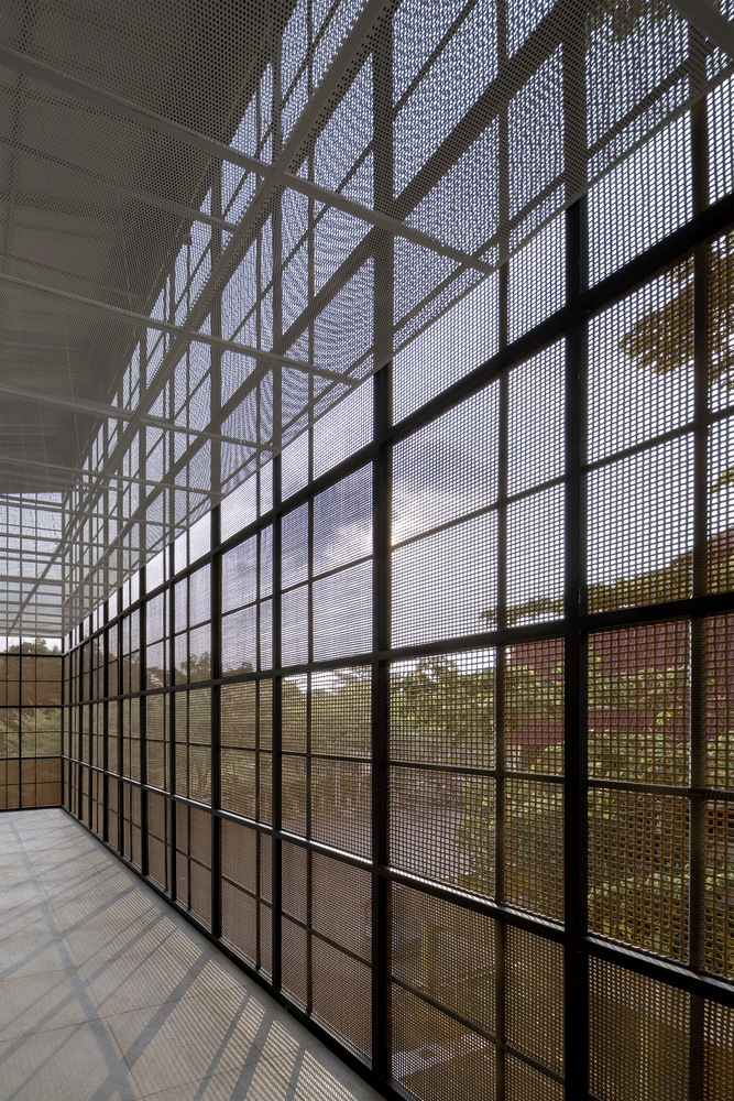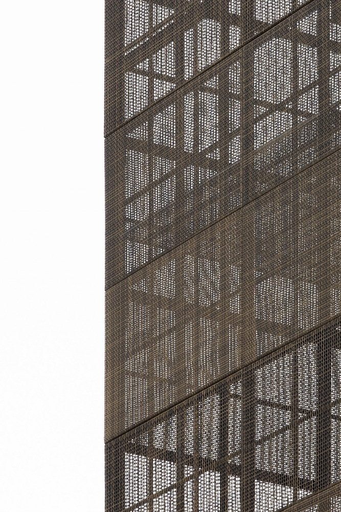 The center boasts woven façade elements strategically deployed to minimize solar heat gain and provide shading, contributing to its energy-efficient design. Tailored panel densities, responding to internal programs and external vistas, showcase a commitment to sustainable architecture.