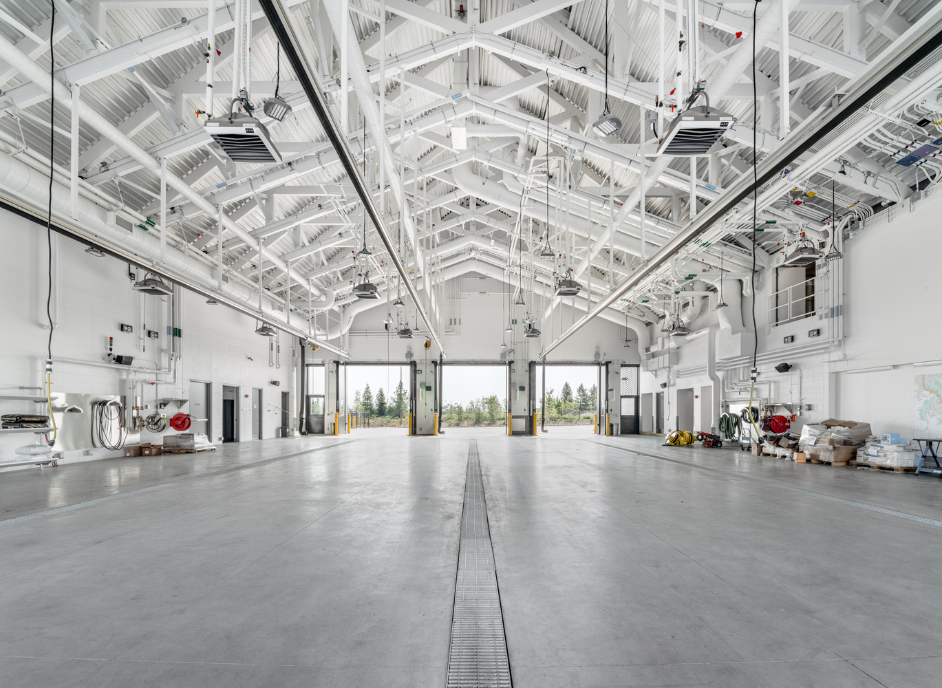 To minimize heat loss, the facility uses bi-folding and quick-closing apparatus bay doors. These innovative doors help maintain a stable indoor temperature, enhancing overall energy efficiency.
