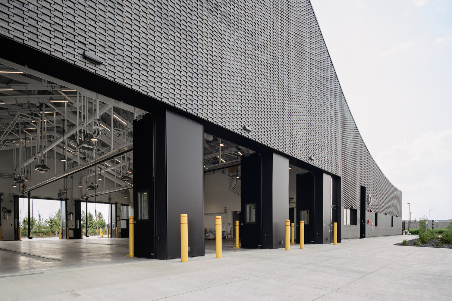 Creating a fire station that is both expressive and sustainable was a key challenge for the architects. The City of Edmonton required a design that could meet strict environmental performance criteria, including generating 100% of its energy needs on-site and achieving 40% better energy efficiency and greenhouse gas emissions compared to the baseline using NECB 2011 standards.