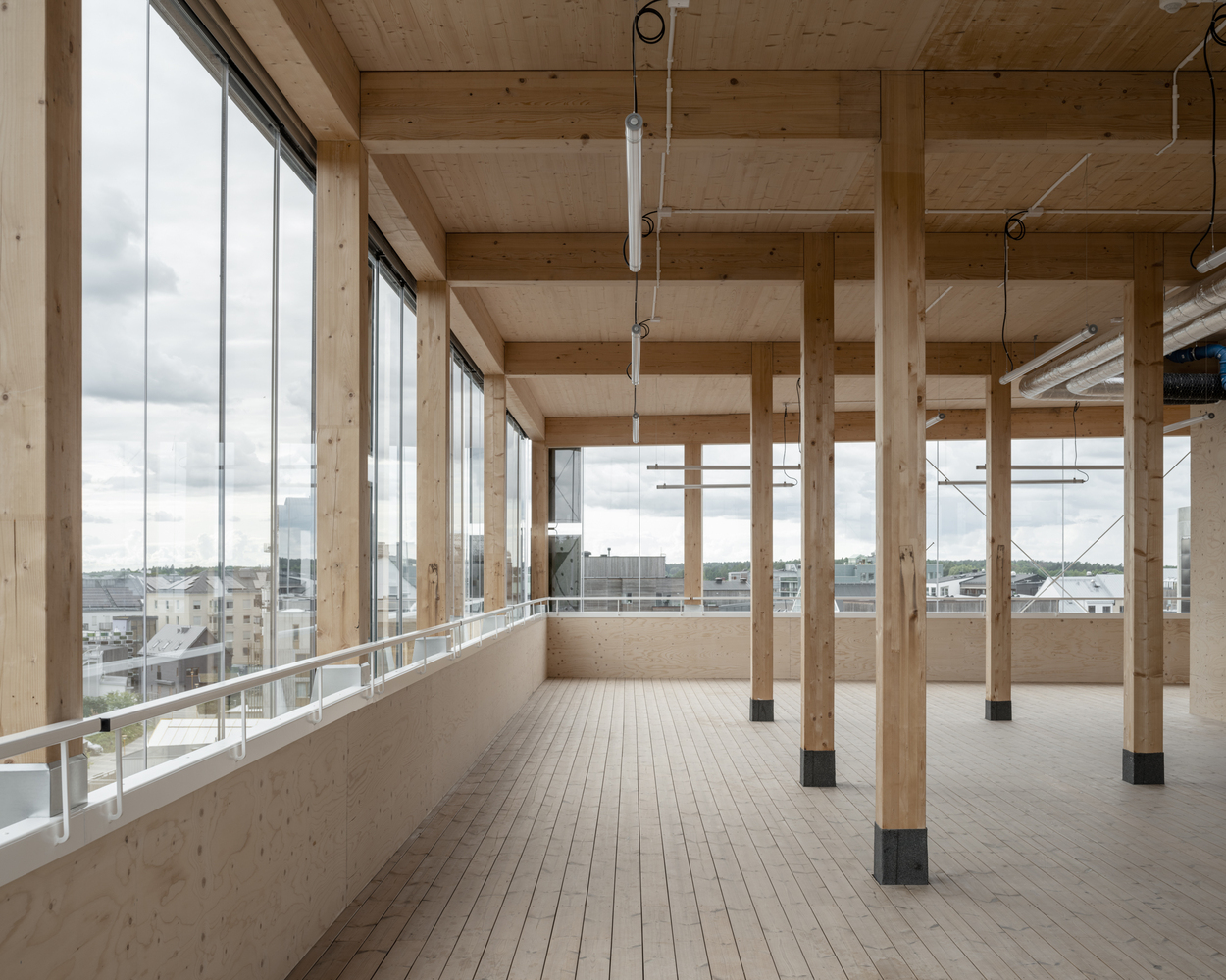 The structure’s framework consists of Cross-Laminated Timber (CLT), chosen for its low carbon footprint compared to traditional building materials like concrete. This choice underscores the project's commitment to environmental sustainability.