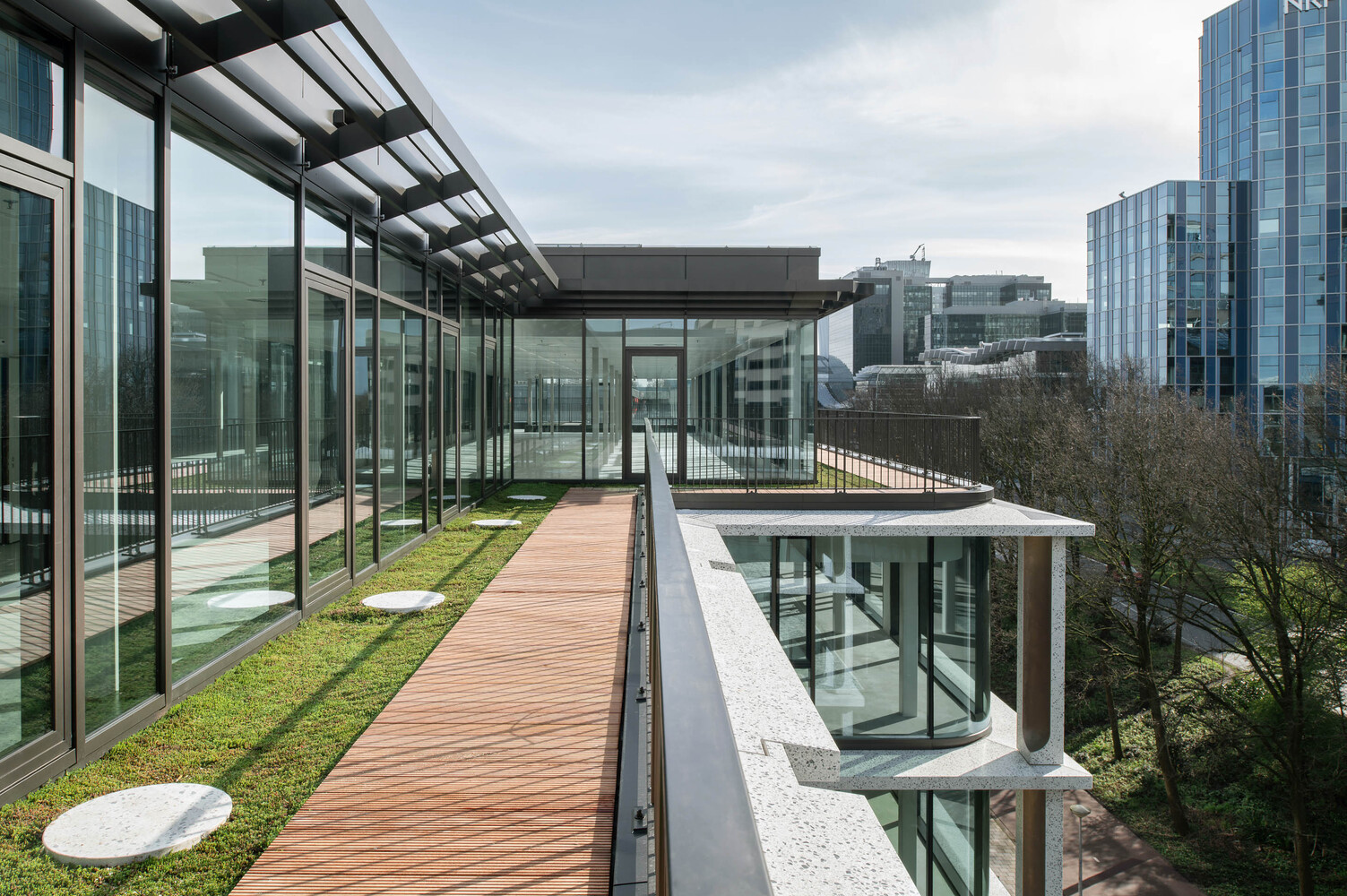 The redesign of the PI59 Offices pays homage to the surrounding green strip that acts as a buffer between the high-rise offices of Zuidas and the residential areas to the north. The redevelopment of the building’s exterior spaces into a garden emphasizes this green connection, enhancing the quality of the urban environment and promoting biodiversity.