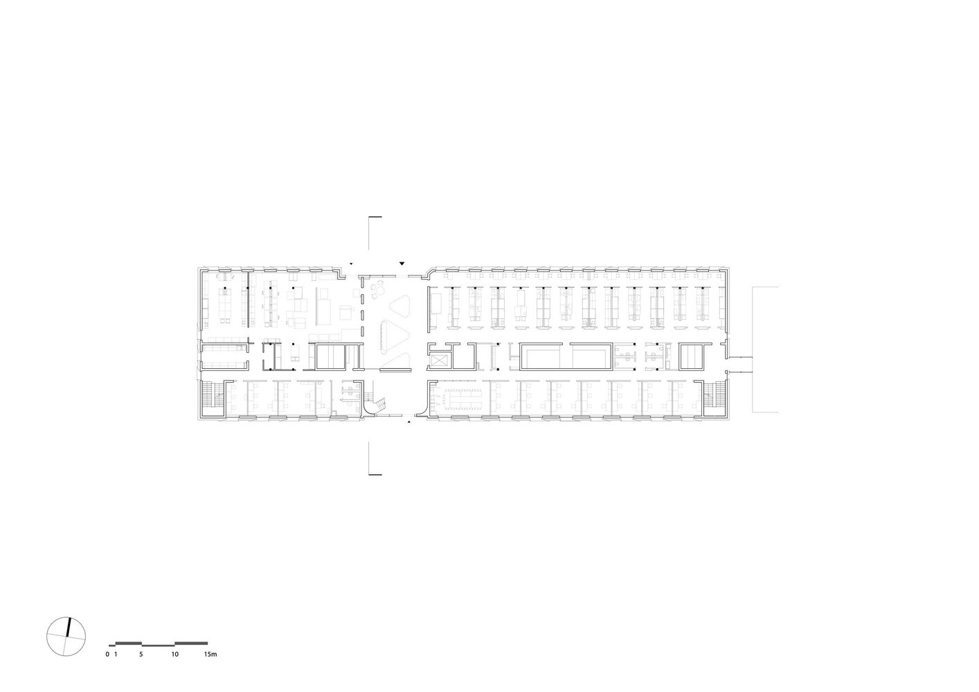 The design of the CEEC extends east-west, creating a new campus square and forming a cohesive urban unit with existing structures. This alignment ensures that the facility not only serves its immediate academic community but also enhances the urban environment of Jena.