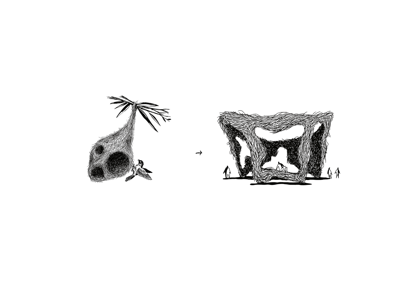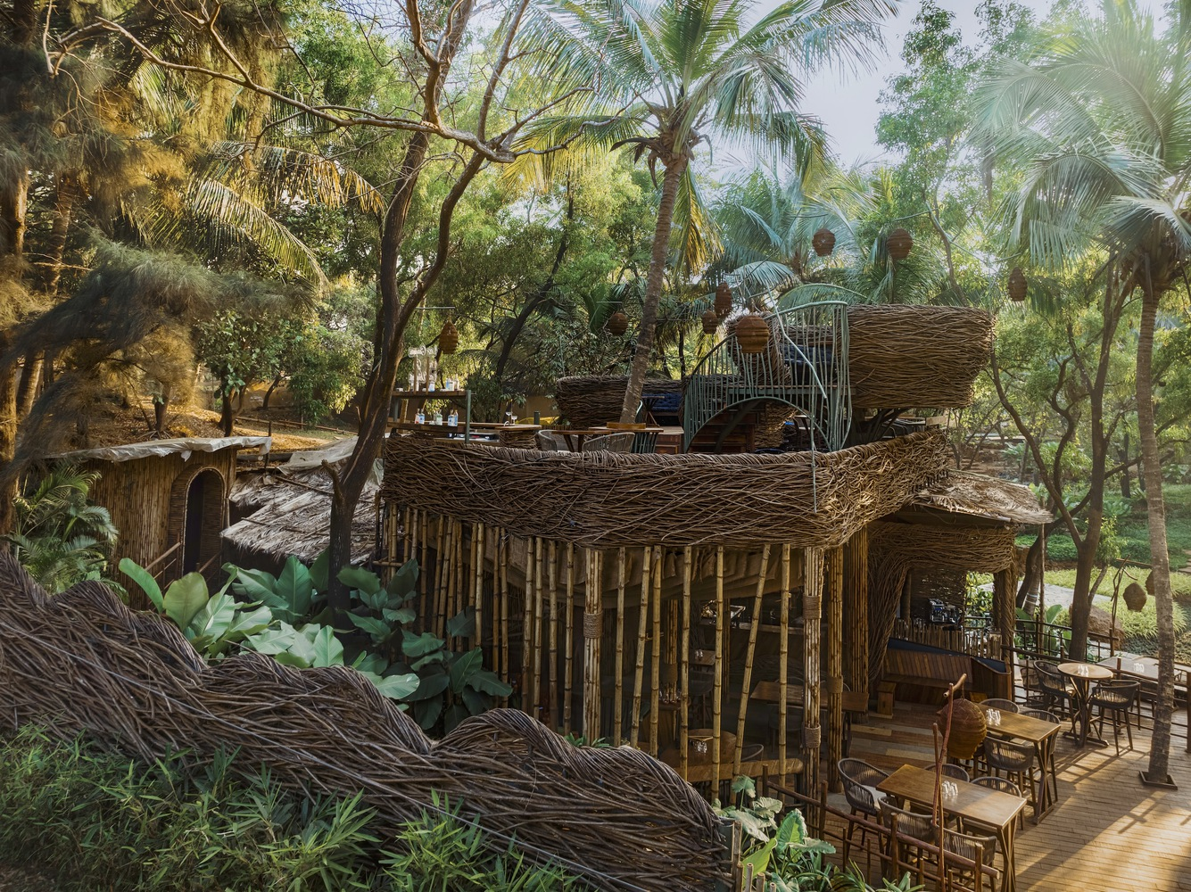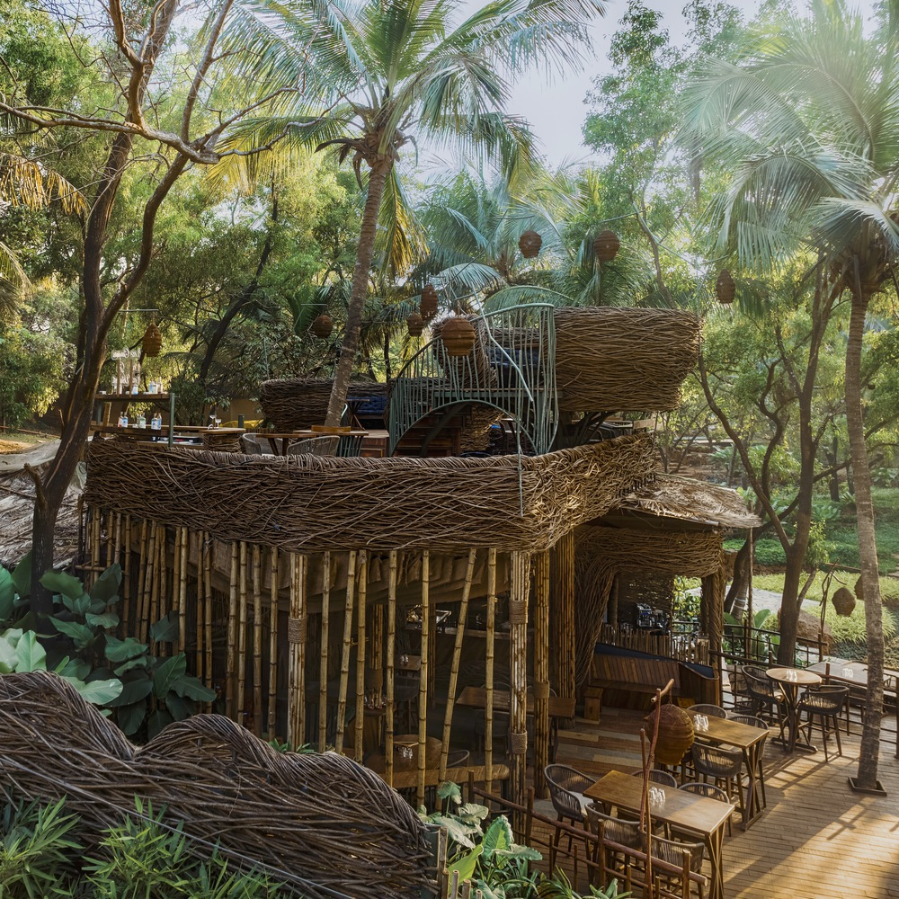 The conceptual genesis of Como Agua Restaurant was to create a dining experience reminiscent of being in a bird’s nest, perched atop a hill within a lush tropical paradise. Overlooking the serene sea in North Goa, the project seamlessly blends into its forested surroundings, inviting diners to immerse themselves in an overgrown, enlarged weaver’s nest. This innovative approach not only provides a unique dining experience but also underscores the project's commitment to sustainability and ecological sensitivity.