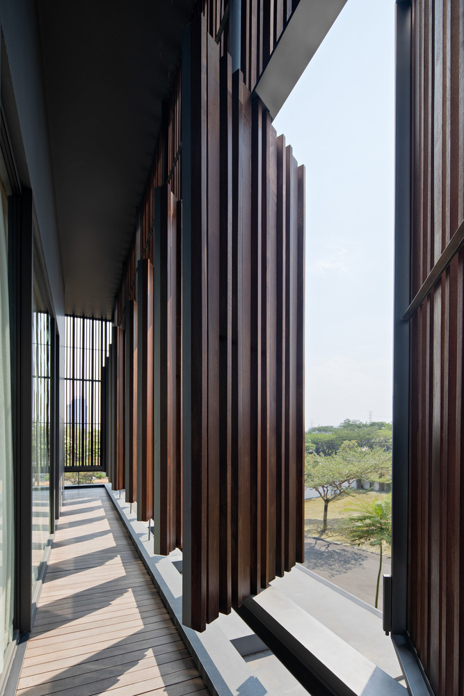 The architectural design of Mentari House seamlessly blends form and function, offering a modern tropical retreat that adapts to its environment. The second skin facade not only provides sun protection but also adds a dynamic aesthetic element to the building.