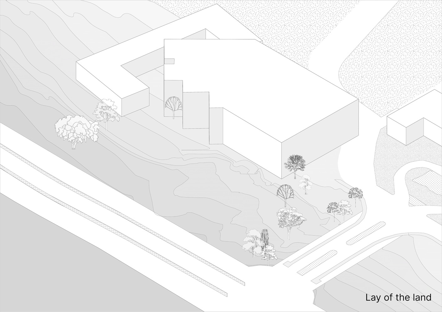 The Figured Ground Sports Arena emphasizes its environmental integration. Sinking large volumes into the ground, the arena blends with the campus landscape, anchoring itself with central courts around which ancillary facilities revolve. This strategy, coupled with a pyramidal steel roof and a green roof enveloping the periphery, blurs the lines between built form and nature.