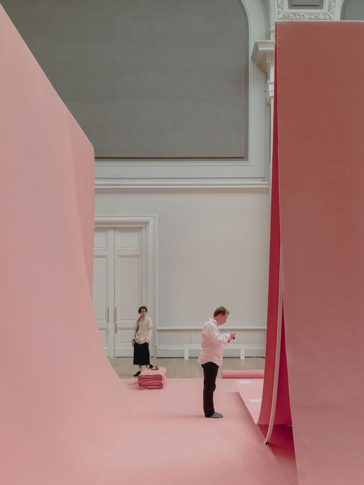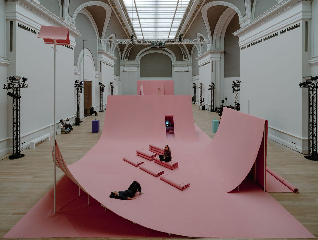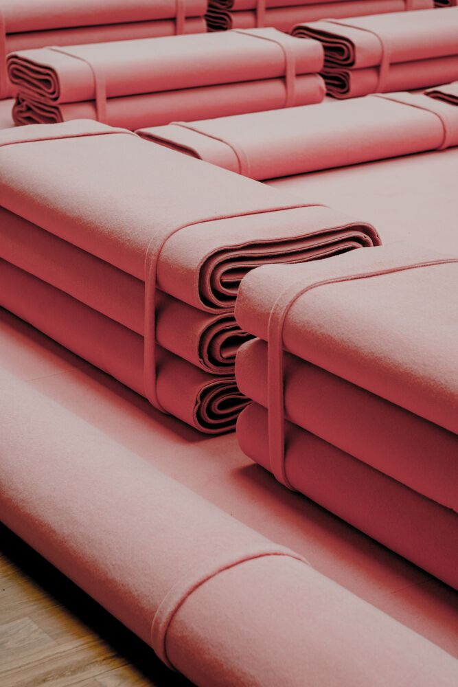 Rather than construct traditional architectural volumes, Studio Ossidiana envisioned the Soft Palace as a vast, undulating textile landscape. This continuous, folded carpet acts like a gigantic garment—soft, mobile, inhabitable. Every crease becomes a pathway, every fold a pocket, every surface a site for rest, play, or performance.