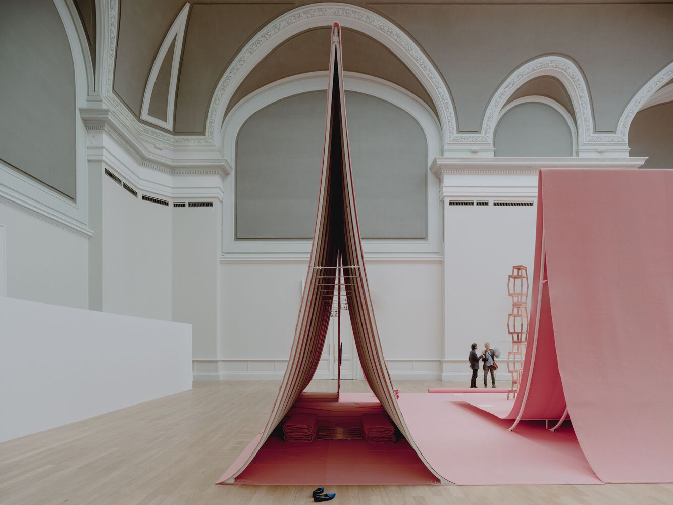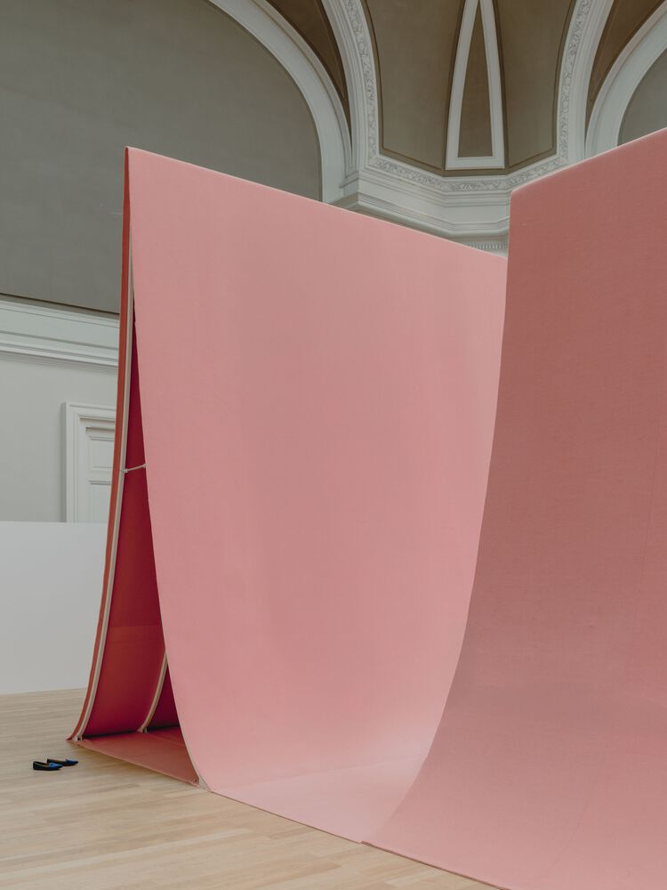 Barefoot movement is encouraged. One can stroll, sit, recline, or disappear into a fold for quiet solitude. Visitors are invited not only to witness events but to become part of them—actors in the collective choreography of daily life. In its fluidity and openness, the installation rejects rigid spatial hierarchies and invites a more intimate, responsive engagement with public space.