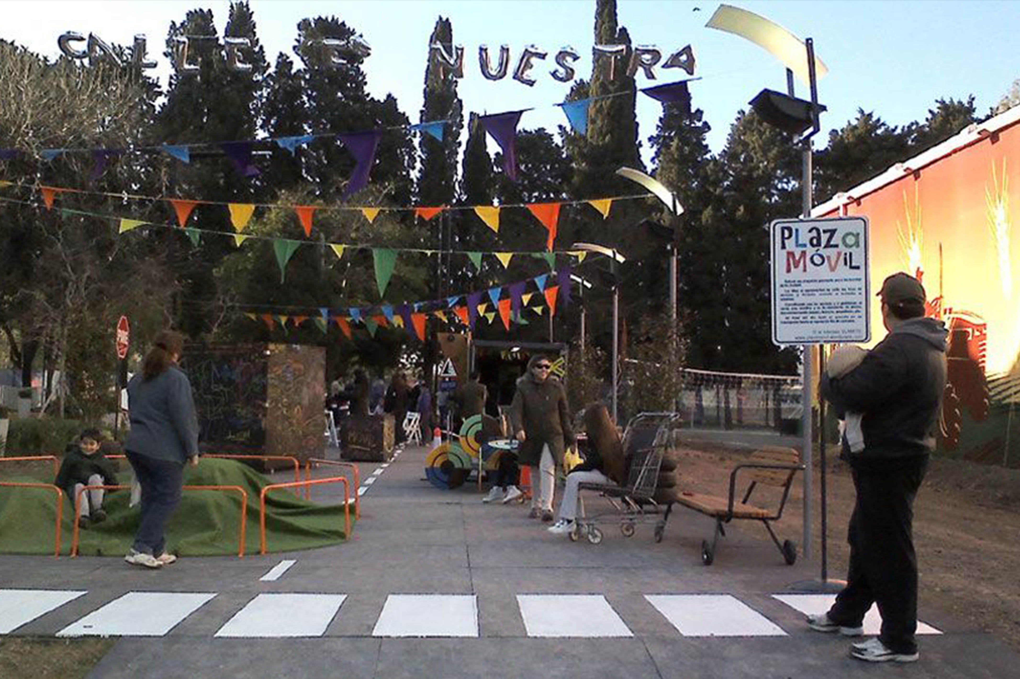Plaza Movil (a movable square), is a transportable public space for the citizens to meet and play. Designed as a part of a competition by Designo Patagonia, it occupies streets in days when transit slows down. These squares are ideal for people who do not live nearer to a good public space or do not have any means to get to them. These portable street parks use discarded materials like car tyres, and supermarket carts to provide play and game equipment to children that come on streets in low traffic. All the elements of the park are easy to transport.