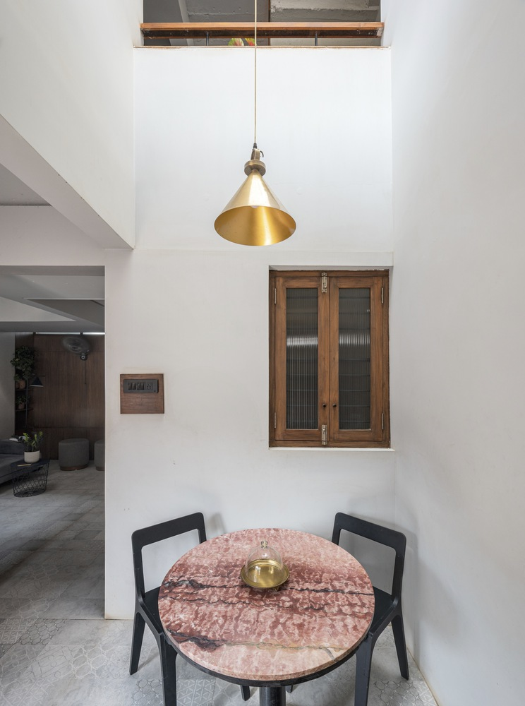 The architectural mastery of Rahul Pudale Design is evident in how the Compact House maximizes natural light and space. Despite having shared walls on three sides, the clever orientation and design allow ample light to filter through from the east. The use of interconnected spaces and overlapping volumes within the residence enhances the sense of openness, making each area feel larger and more integrated.