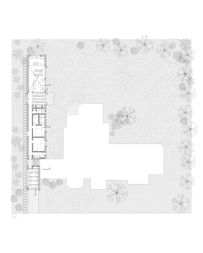 One of the project's key features is its material dialogue with the existing structure. While the new construction distinctively uses brick throughout, it maintains a conversational relationship with its neighbor. This approach not only respects the aesthetic of the surroundings but also reinforces the cohesive blend of new and old architectural elements.