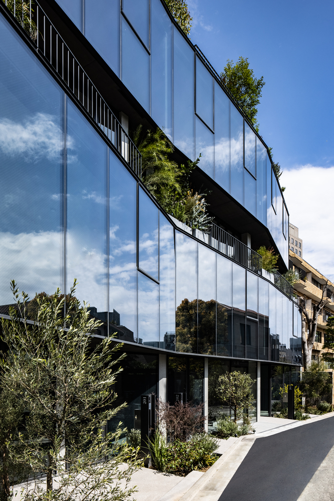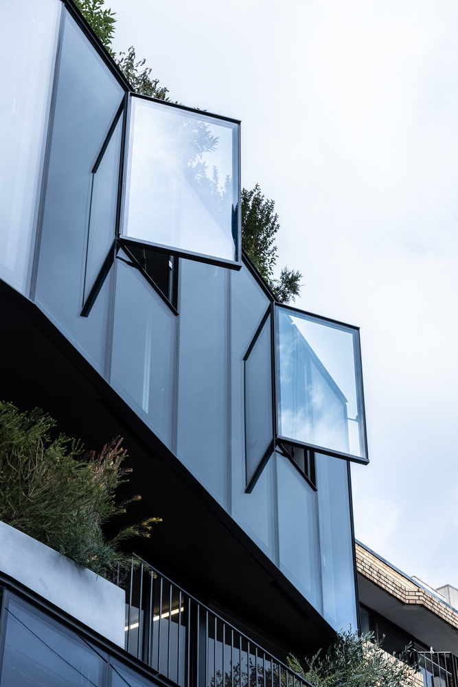 The building showcases advanced architectural techniques, including a box-in-box structure for enhanced privacy and energy efficiency. The use of transparent glass and sash-less curtain walls not only maximizes natural light but also integrates the living spaces with the surrounding cityscape, making the architecture a beacon of modern urban living.