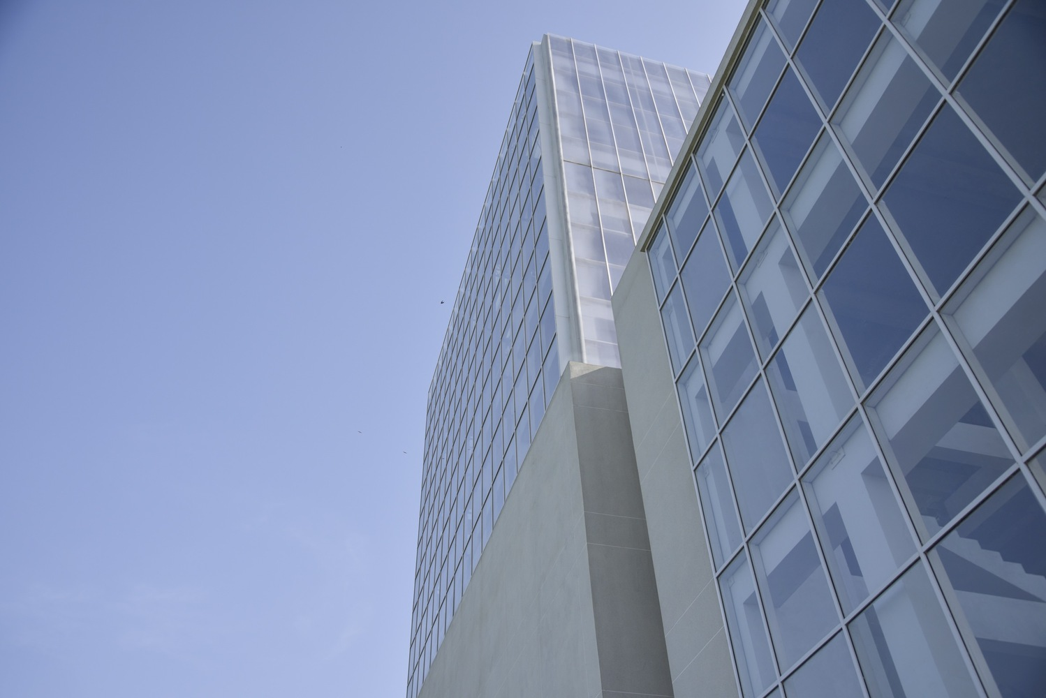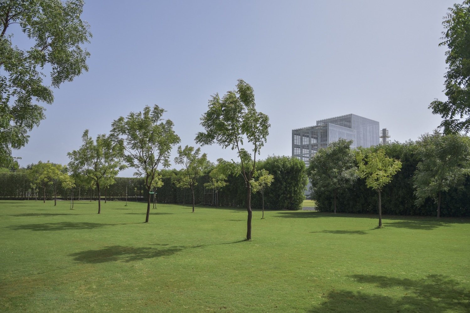 The campus features a translucent, recyclable multilayered polycarbonate façade system. This material selection enhances thermal performance, reduces operational costs, and minimizes energy consumption. The lightweight nature of the façade allows for easy installation and reconfiguration, while its high strength provides resistance to impact and fracture.