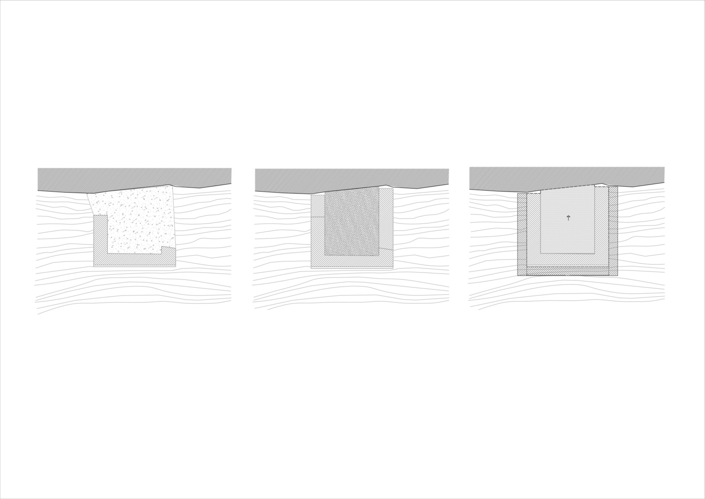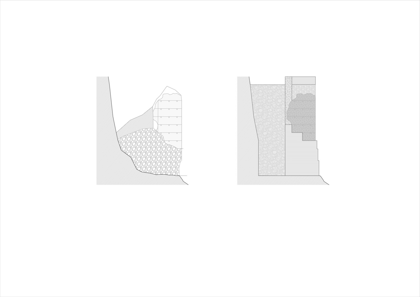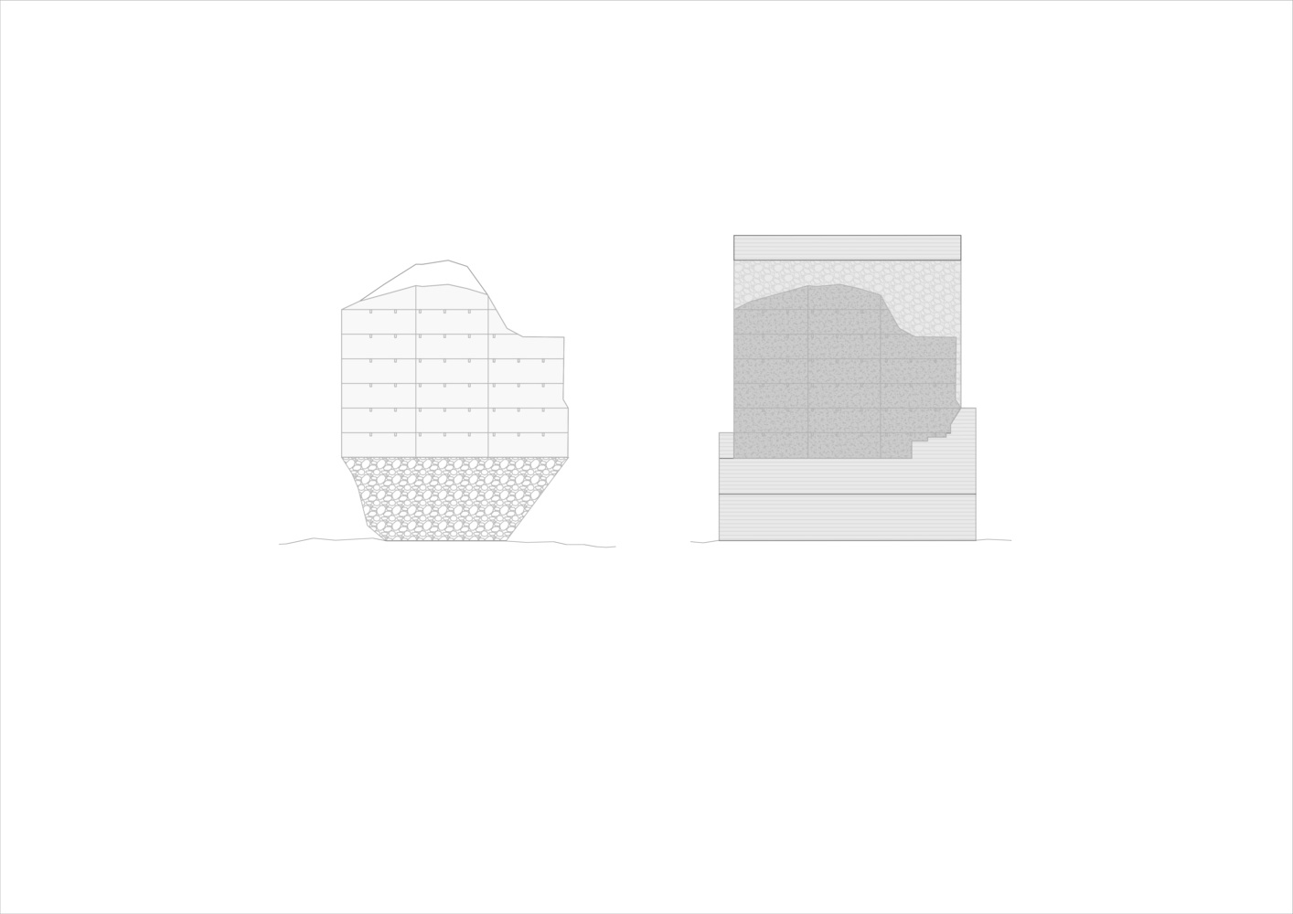The newly added walls are intentionally set back, maintaining a respectful distance from the original structure. This technique highlights the existing elements, creating a shadow play that emphasizes the tower’s original features.