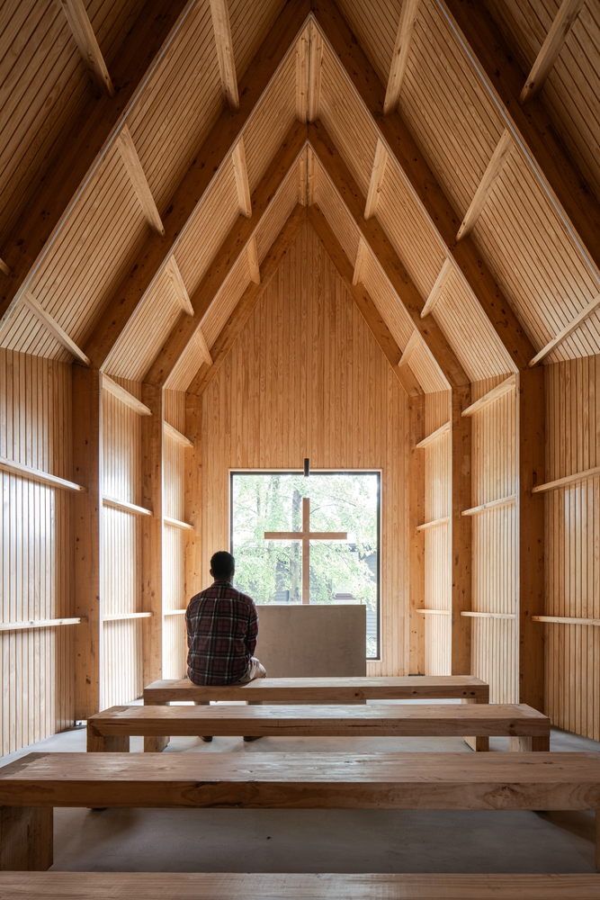 Beyond its structural and aesthetic functions, wood serves as a bridge between the chapel, its visitors, and the act of worship. This material choice reflects a deeper understanding of architecture's role in fostering a connection with the divine, the environment, and the community.