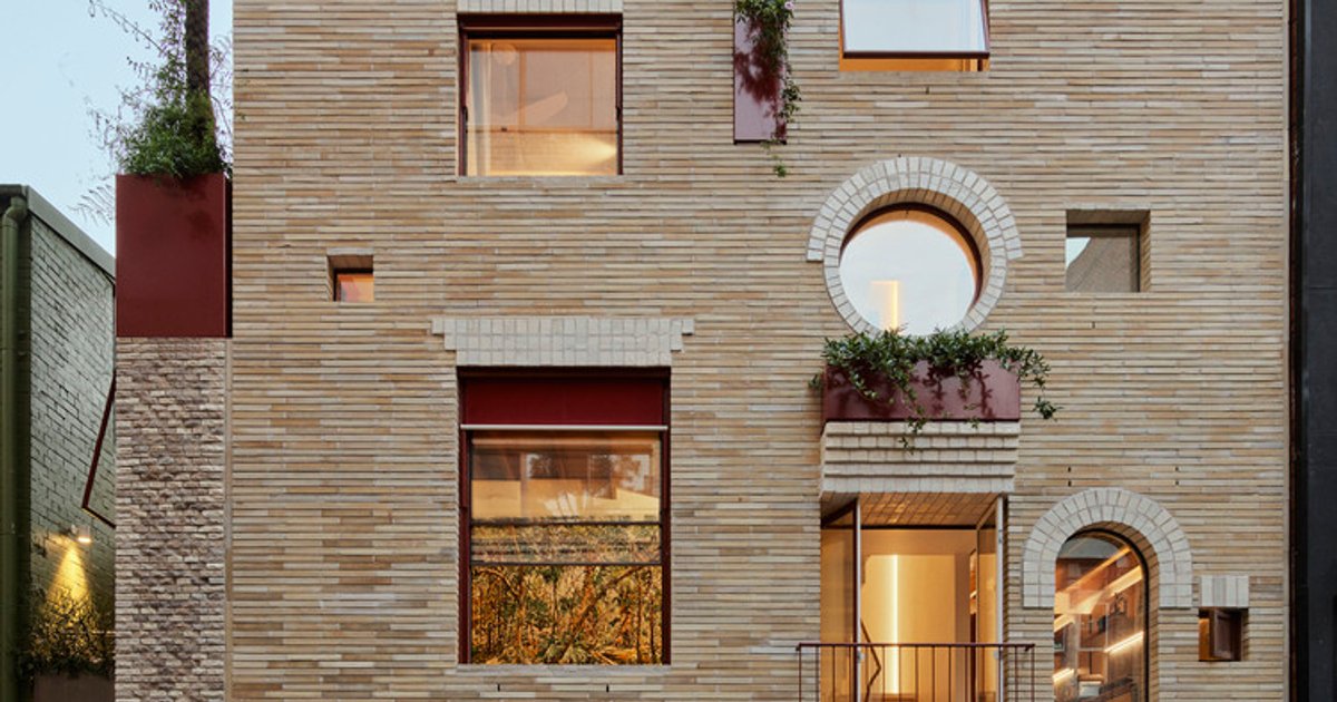 Externally, the architecture expresses playfulness and character through its tactile brick façade, which draws inspiration from the textures and eclectic charm of Surry Hills. Reclaimed bricks form a richly layered surface, while broken bricks reference the historic sandstone foundations that define nearby streets. These materials are cut, folded and reassembled to conceal openings, guide views and introduce sculptural depth. A shift in brick scale on the upper levels frames windows and supports areas for planting, offering softness and organic touchpoints amid the density.