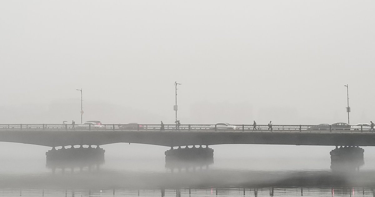 After a drastic temperature drop, thick fogs emerged on the water surface of Boston Harbor, flowed into Charles River, and gradually swallowed the city of Boston. Modern skyscrapers, historic townhouses, concrete highways, asphalt trails, metal signs, and other evidence of centuries of human interventions vanished in the invincible blankness of a natural phenomenon.