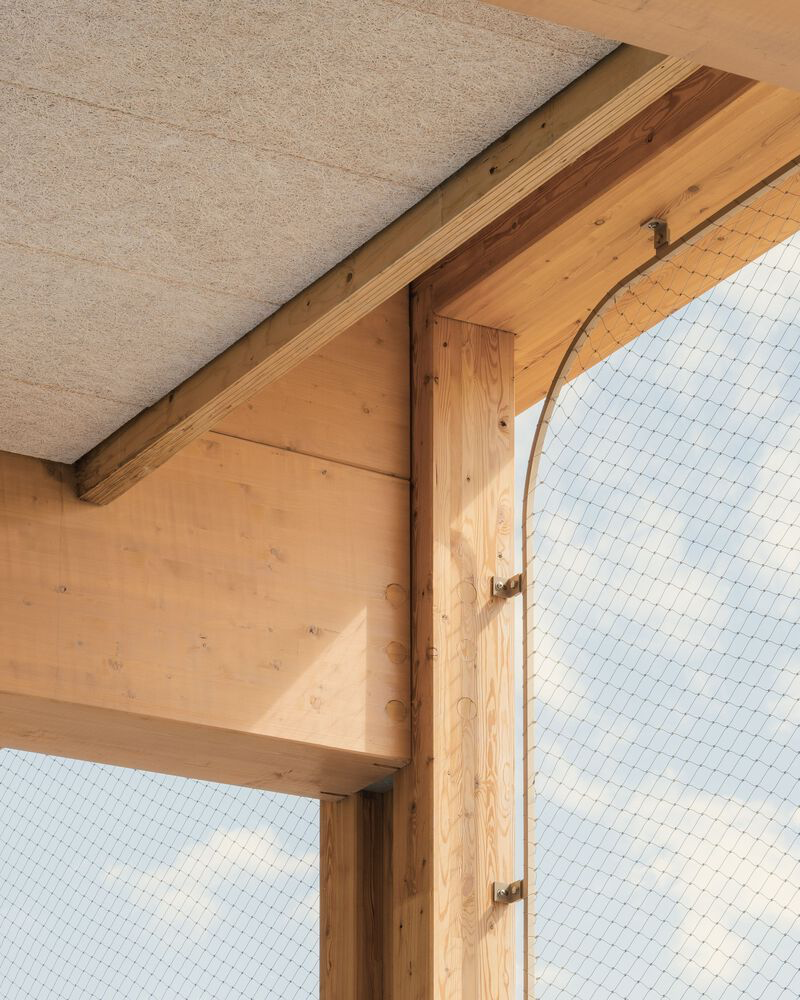 Between classrooms, mud bricks integrated into the wooden structure highlight the use of natural and bio-sourced materials. Patios distributed throughout the plan ensure excellent daylighting, natural ventilation, and comfortable humidity levels across all spaces.