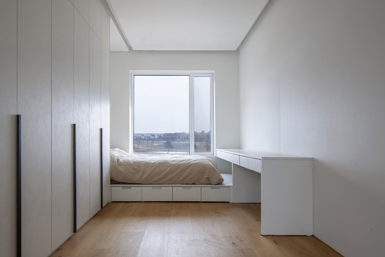 The living room, with its high ceiling and expansive views of the golf course, acts as the family's communal heart, promoting shared experiences. Meanwhile, the upper floors house the private quarters for the grandparents, parents, and children, each designed with careful consideration to ensure privacy while maintaining a connection to the communal areas and nature.