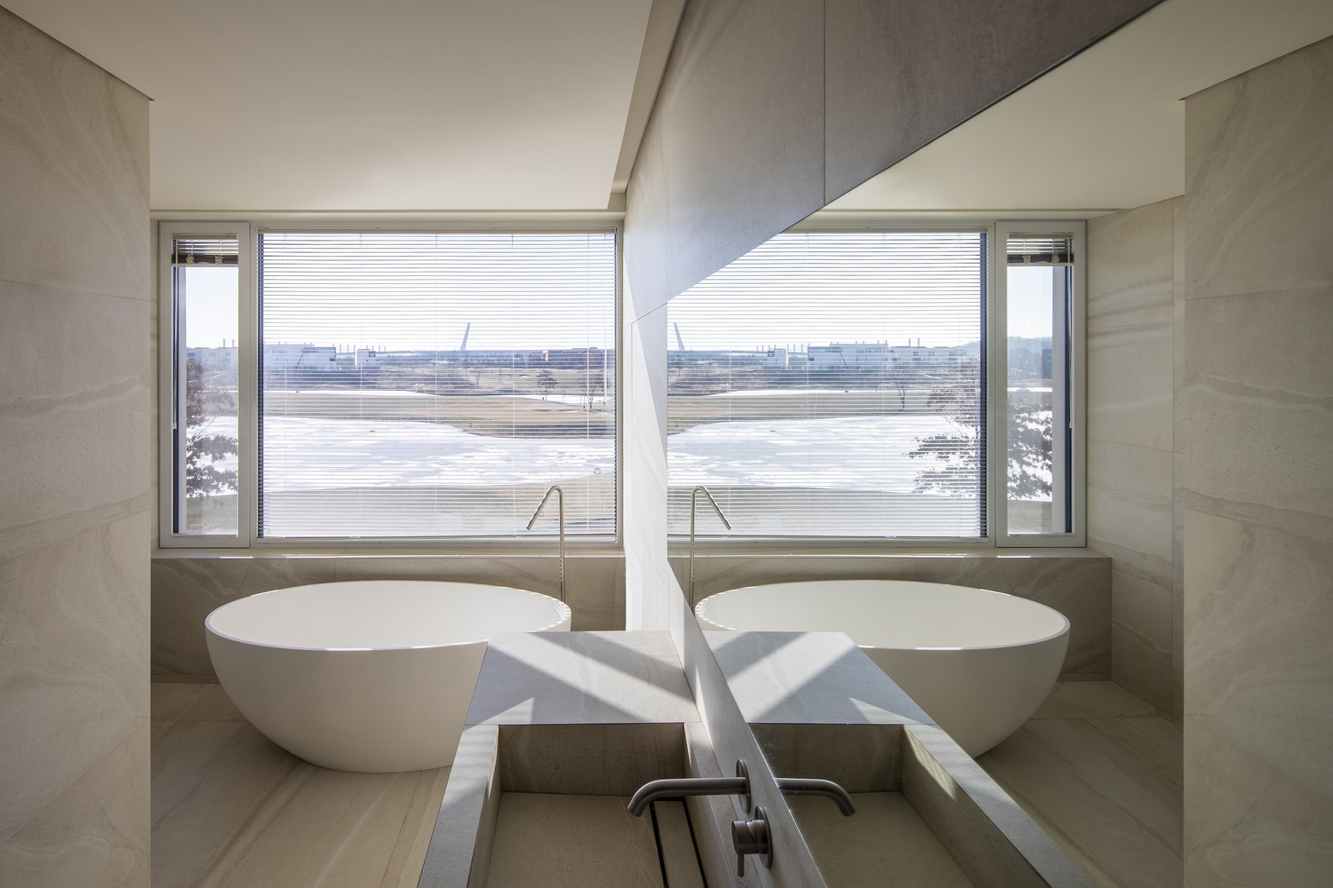 "A Home for Three Generations" is a masterpiece that seamlessly blends with its natural surroundings. Situated near a lush golf course, the home is designed to provide a tranquil retreat from the hustle and bustle of urban life. The architects have meticulously crafted a dwelling that celebrates nature, with large windows and open spaces inviting the outside in, creating a serene atmosphere that permeates every corner of the home.