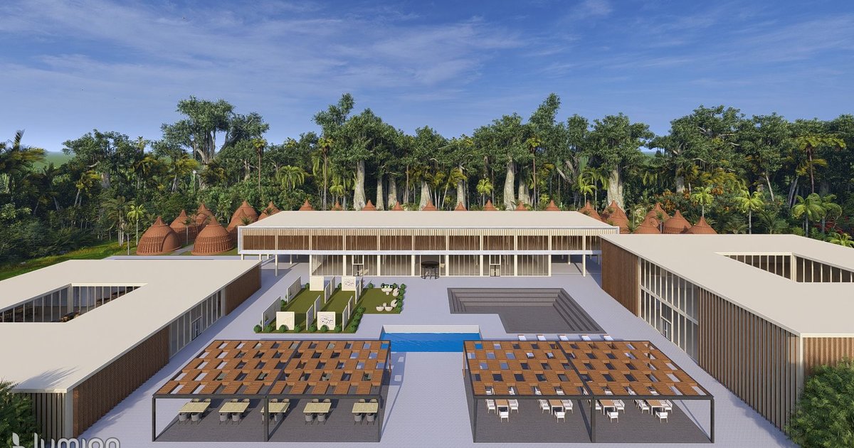 The project envisions a cacao cultural center, museum, workshops, and eco-lodging villas, arranged around a central open courtyard that functions as the heart of the complex. Inspired by the geometry and ritual symbolism of ancient squares, these interconnected spaces promote both social interaction and contemplative solitude.