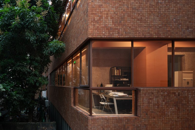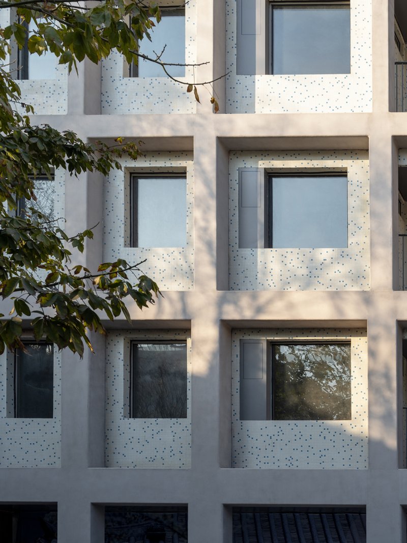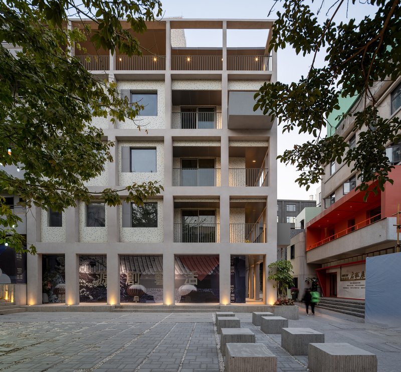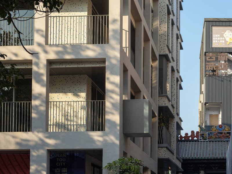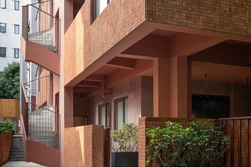 NT46 is situated near a busy square in Nantou, offering a rare opportunity for self-expression within the dense, cramped city fabric. However, the challenge for fabersociety was to respect the building’s original identity while adapting it for modern use. The building’s mosaic façade, a defining feature of Nantou’s architecture, was preserved as much as possible. The architects reorganized the building's shape, adding a new platform, reconfiguring the balcony, and opening up new corridor spaces—all without compromising the original aesthetics.