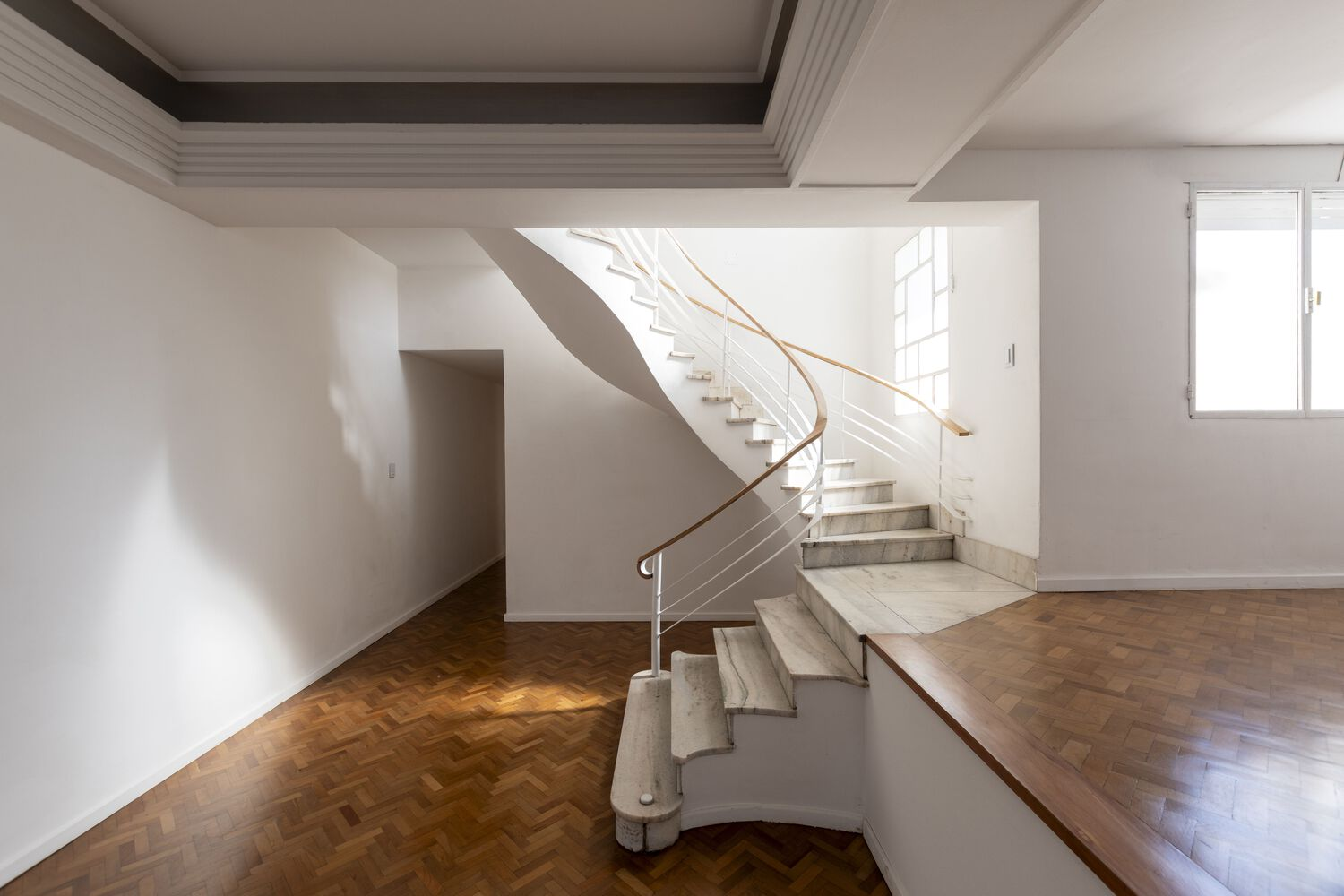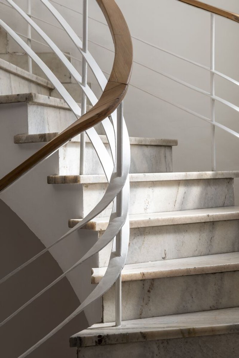 Originally constructed in the early 20th century, the property underwent multiple transformations over the decades. Initially a two-level residence, a third level was added in the 1940s, creating a distinctive vertical circulation featuring a marble staircase and spiral stairs that remain central to the building's identity. Thick walls, white-painted high ceilings, wooden floors, and marble elements defined the historic character, which had been compromised over years of alternative use and neglect.