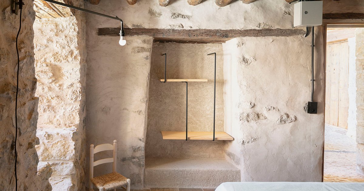 A medieval parish house restored into rural accommodation, celebrating vernacular heritage through sensitive historic building restoration in Spain.