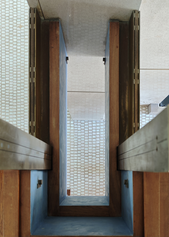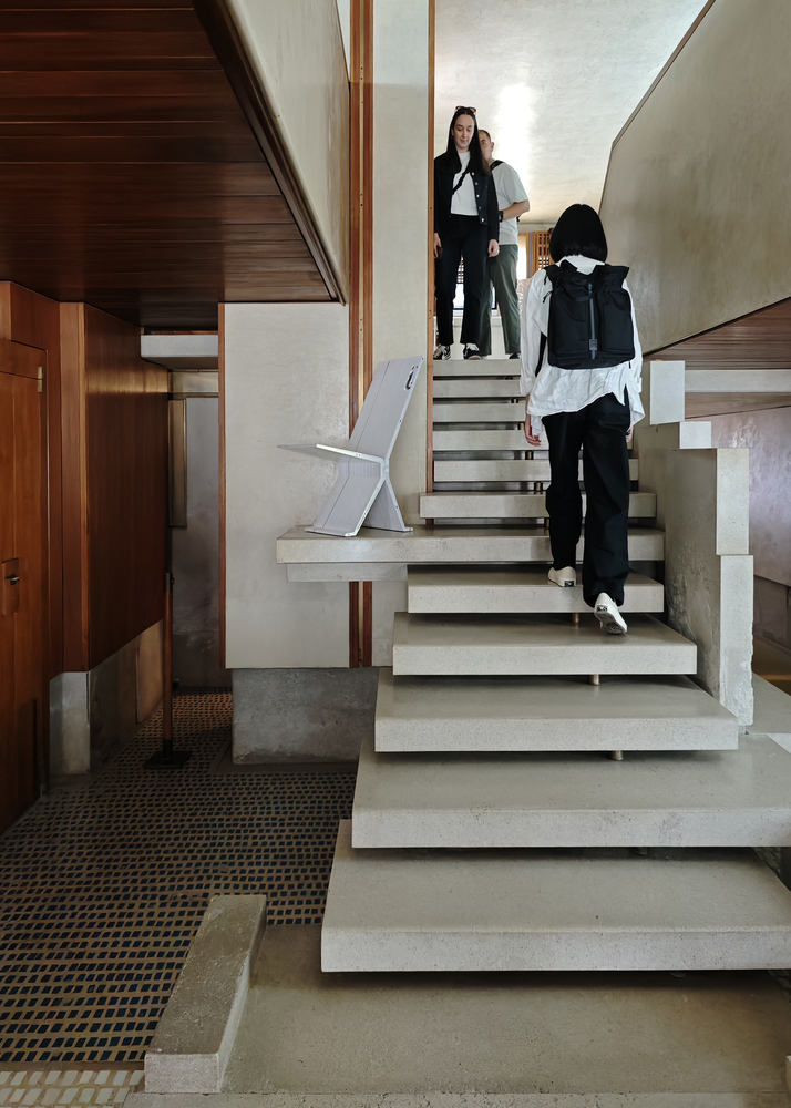 To revive the fortress's original defensive logic, the architects strategically removed part of the structure and introduced a new courtyard. This open-air void redefined the spatial organization, allowing the historic tower and wall to stand independently and reclaim their historical character. The courtyard also serves a practical function, providing natural light, ventilation, and vertical circulation that links all levels of the newly restored building.