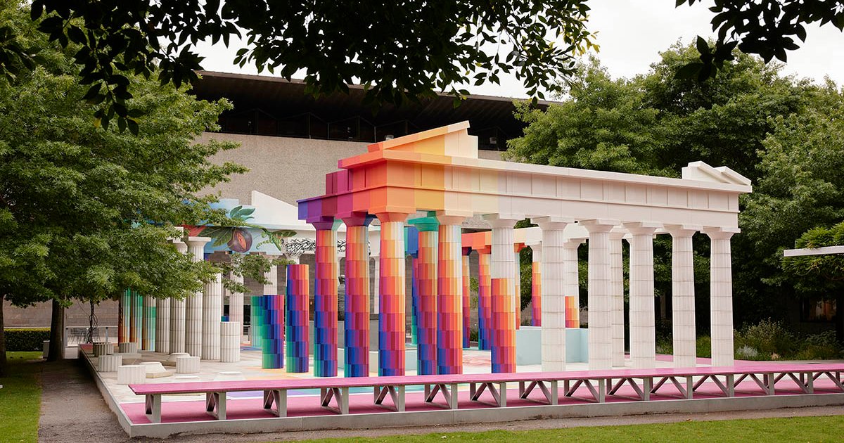 Adam Newman and Kelvin Tsang installed a colorful, mural-clad version of the Parthenon at NGV's Garden.