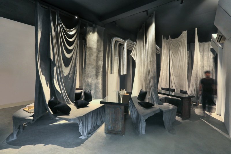 An Indian architect named Ar. Vinu Daniel may be coined to be the pioneers of sustainability. One of his cafes has used cloth that has been used as a reinforcement dipped in the concrete that would acquire a particular shape as furniture. His ongoing project also includes the use of old toys as one of the components in his design.