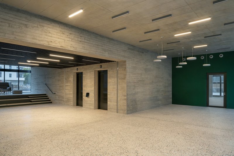 Inside, the building continues the dialogue between rough and refined materials, offering spaces defined by simple elegance and lightness. The harmonious integration of robust and delicate elements not only enhances the building’s visual identity but also strengthens its role as a contemporary landmark shaped by adaptive reuse architecture.