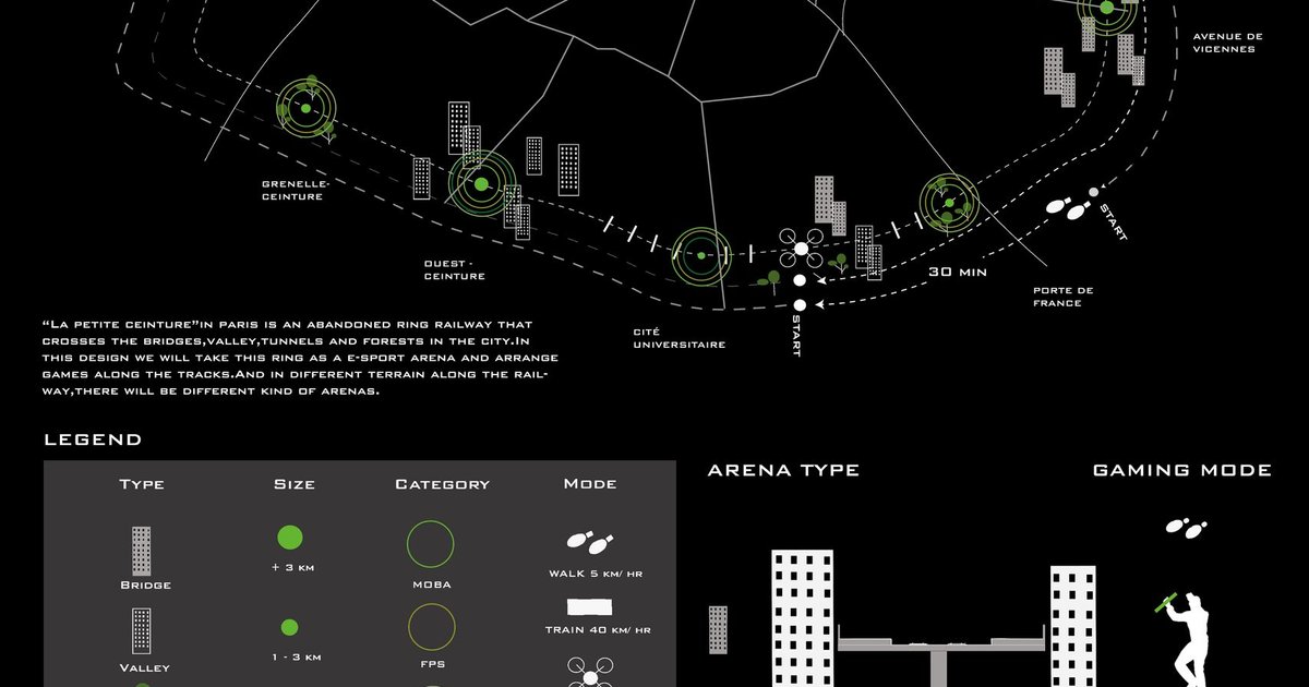 Adaptive Reuse in Architecture: Redefining Paris' Petite Ceinture as a Futuristic Esports Arena